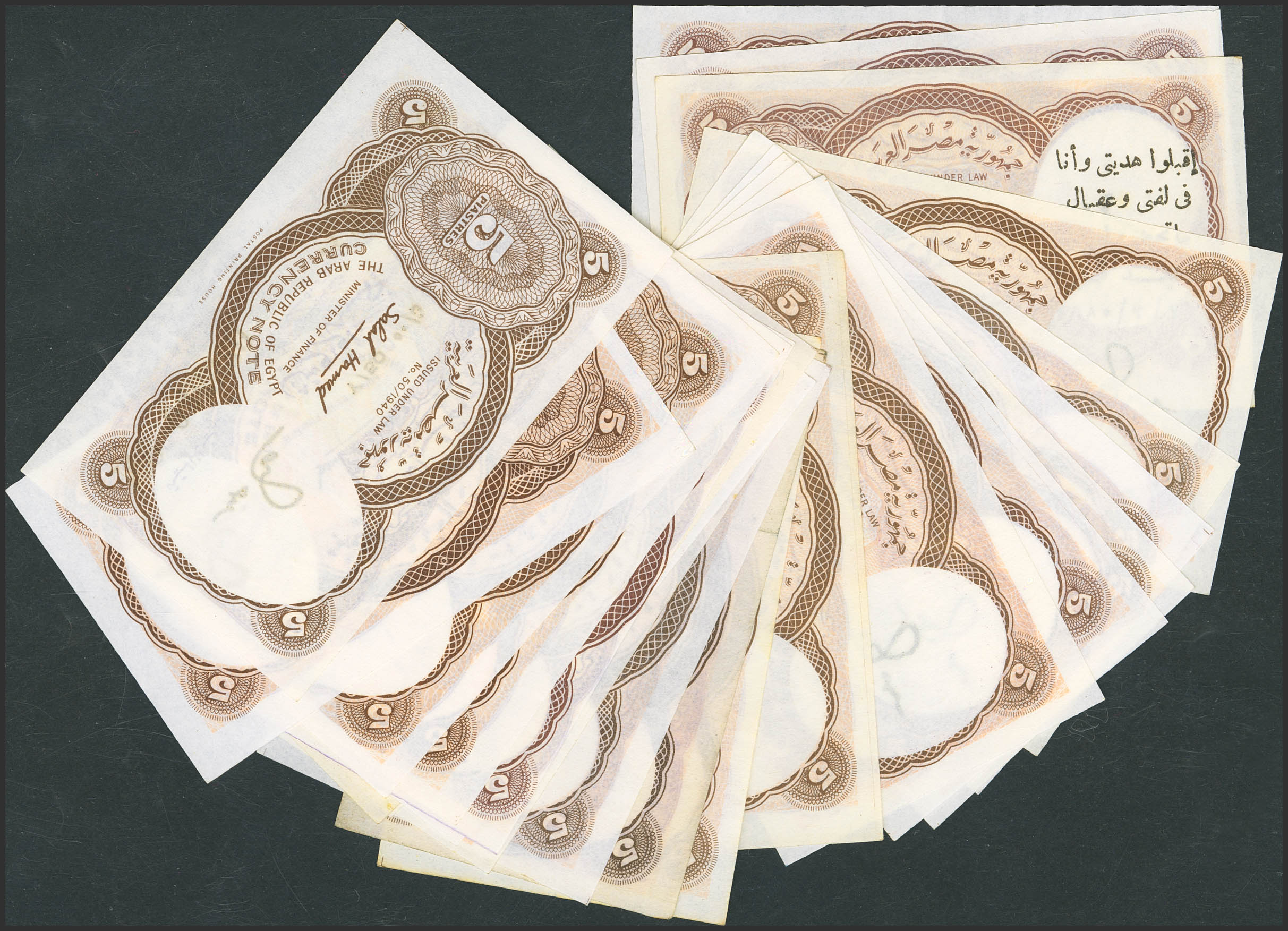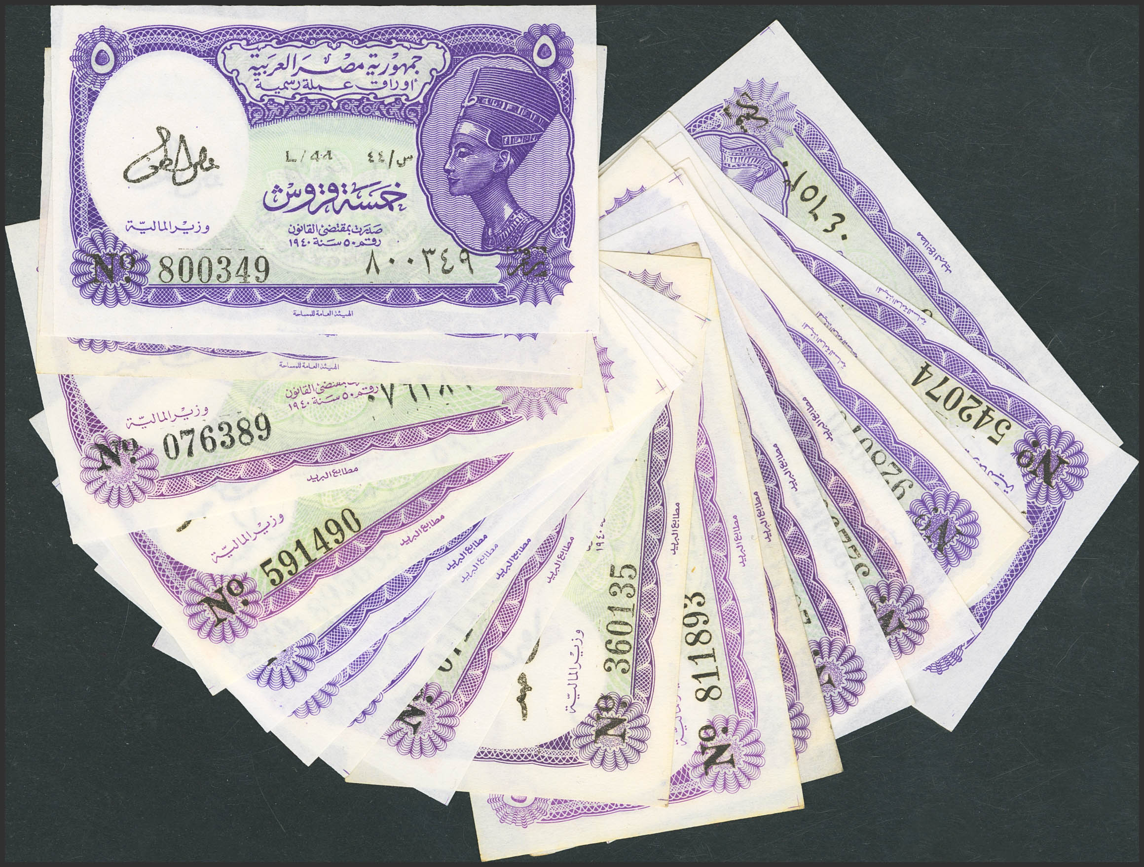 EGYPT. Lot of 23 notes of 5 Piastres. 1940. Arab Republic. Mixed subreferences. (Pick: 182). Less than Uncirculated to Uncirculated.