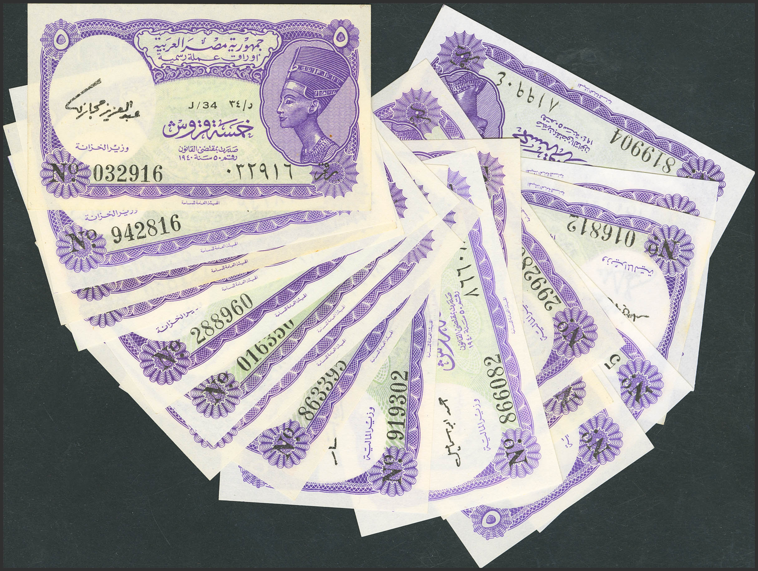 EGYPT. Lot of 18 notes of 5 Piastres. 1940. Arab Republic. Mixed subreferences. (Pick: 182). Less than Uncirculated to Uncirculated.