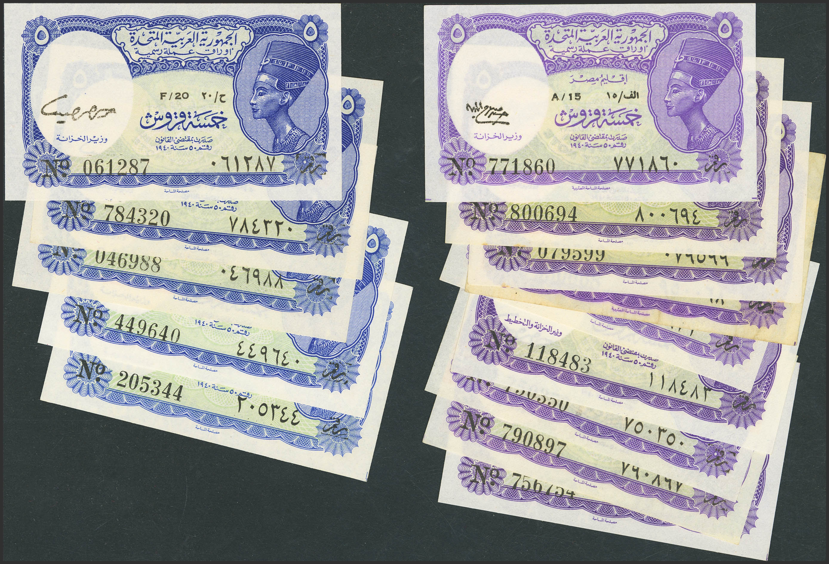 EGYPT. Lot of 14 notes of 5 Piastres. 1940. United Arab Republic. Mixed varieties. (Pick: Mixed). Very Fine (1) to Uncirculated (11).
