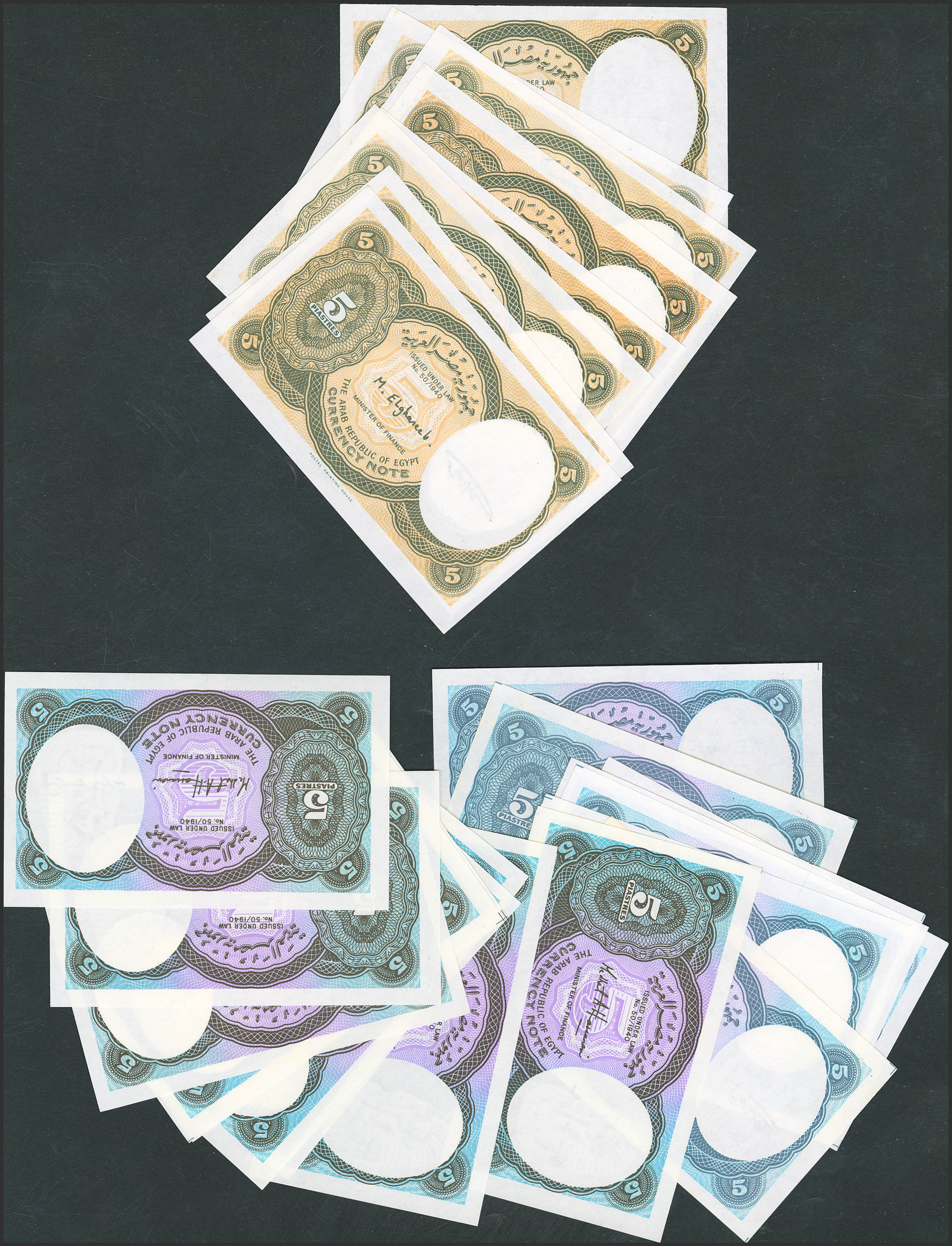 EGYPT. Lot of 24 notes of 5 Piastre. 1940. Arab Republic. Mixed references and subreferences. (Pick: 185 to 190A). Less than Uncirculated to Uncirculated.