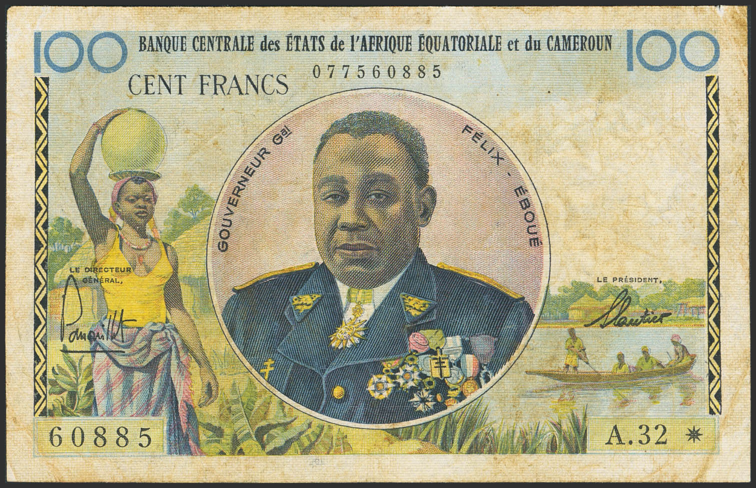 EQUATORIAL AFRICAN STATES. 100 Francs. (1961ca). Banque Centrale. Cameroon. (Pick: 1e). Flattened. Fine.
