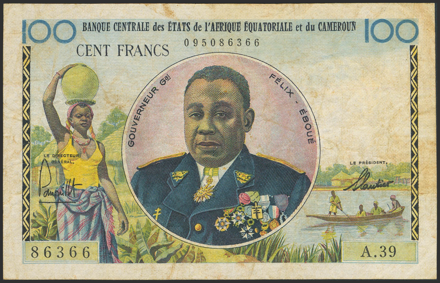 EQUATORIAL AFRICAN STATES. 100 Francs. (1961ca). Banque Centrale. Without code letter. (Pick: 1f). Very Fine.