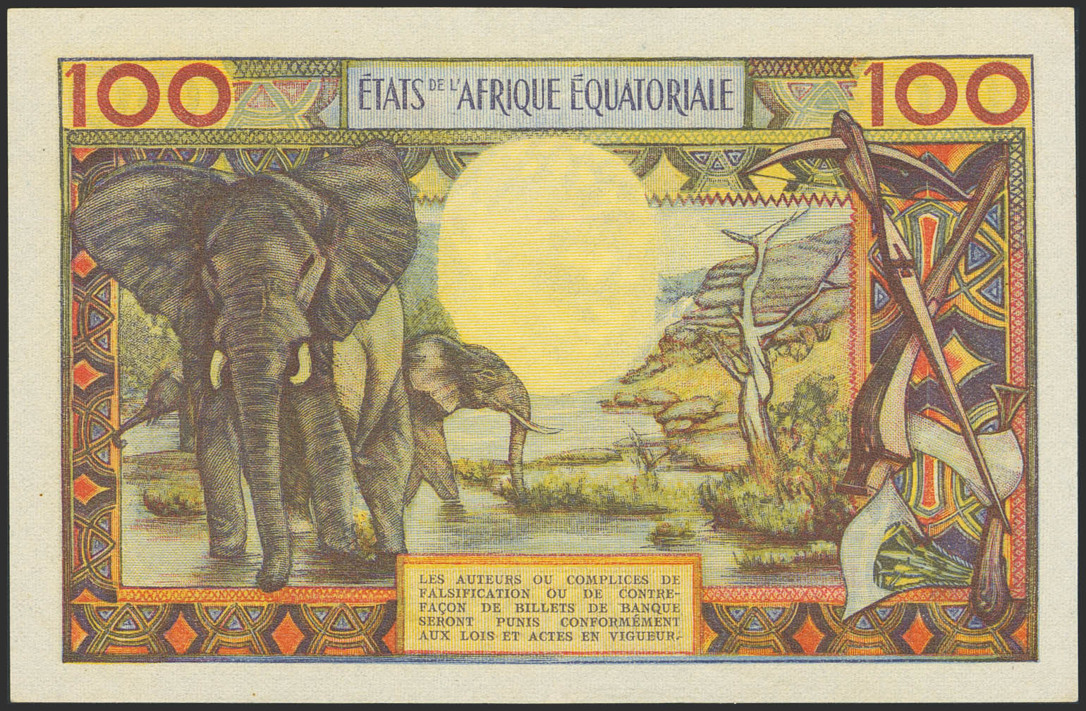 EQUATORIAL AFRICAN STATES. 100 Francs. (1963ca). Banque Centrale. Central African Republic. (Pick: 3b). Extremely Fine.
