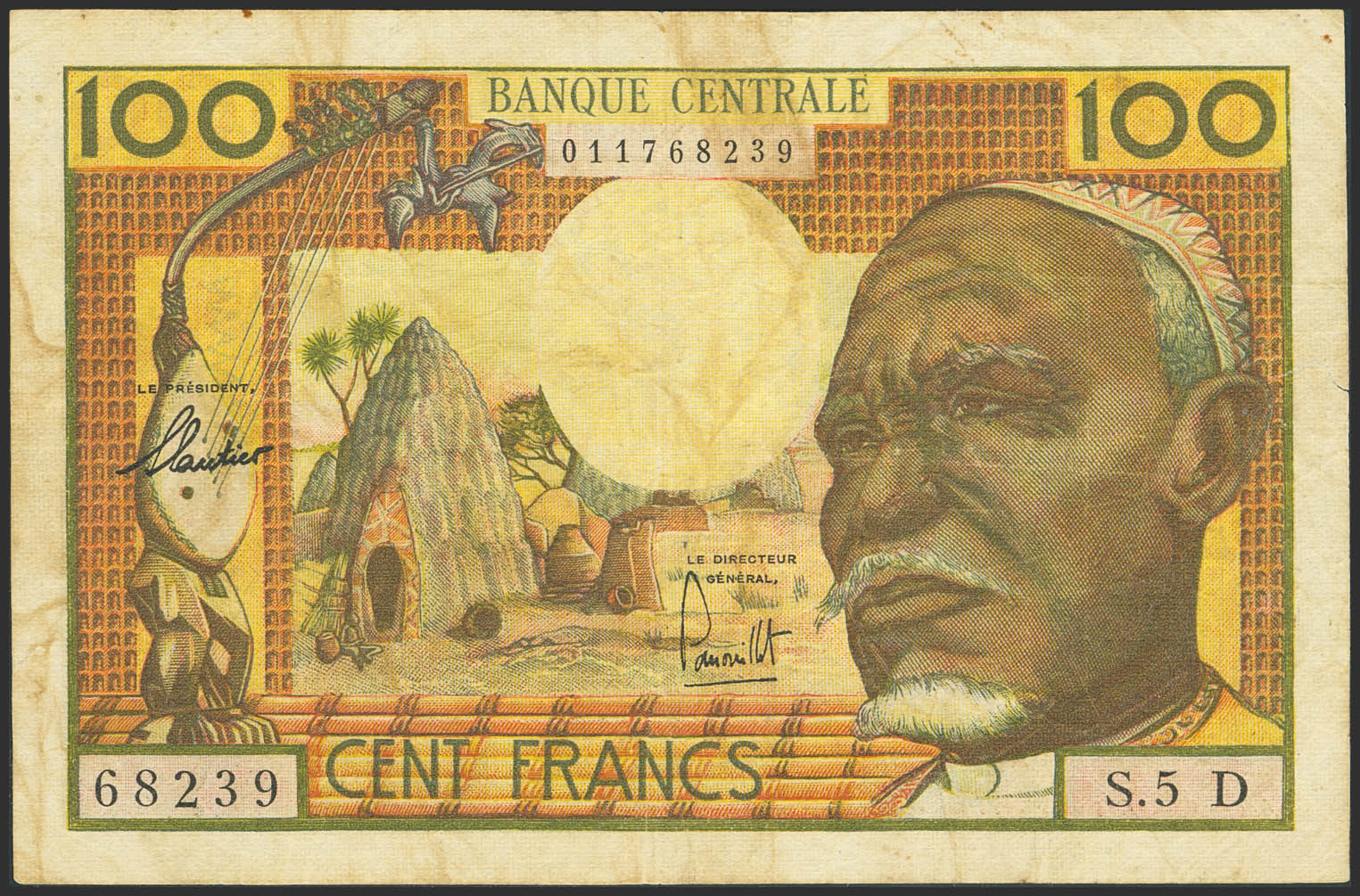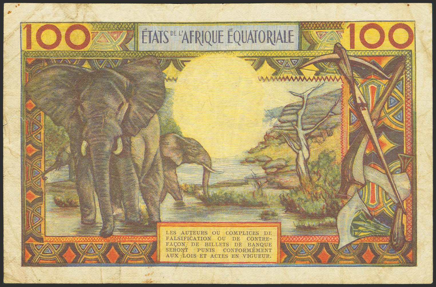EQUATORIAL AFRICAN STATES. 100 Francs. (1963ca). Banque Centrale. Gabon. (Pick: 3d). More than Fine.
