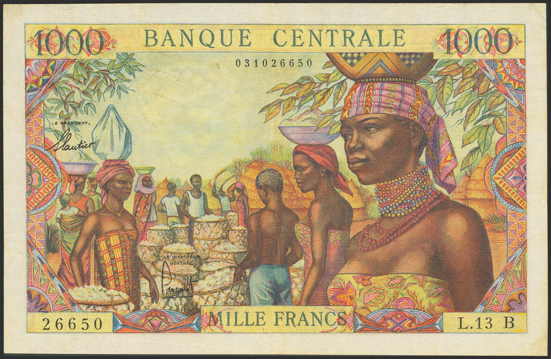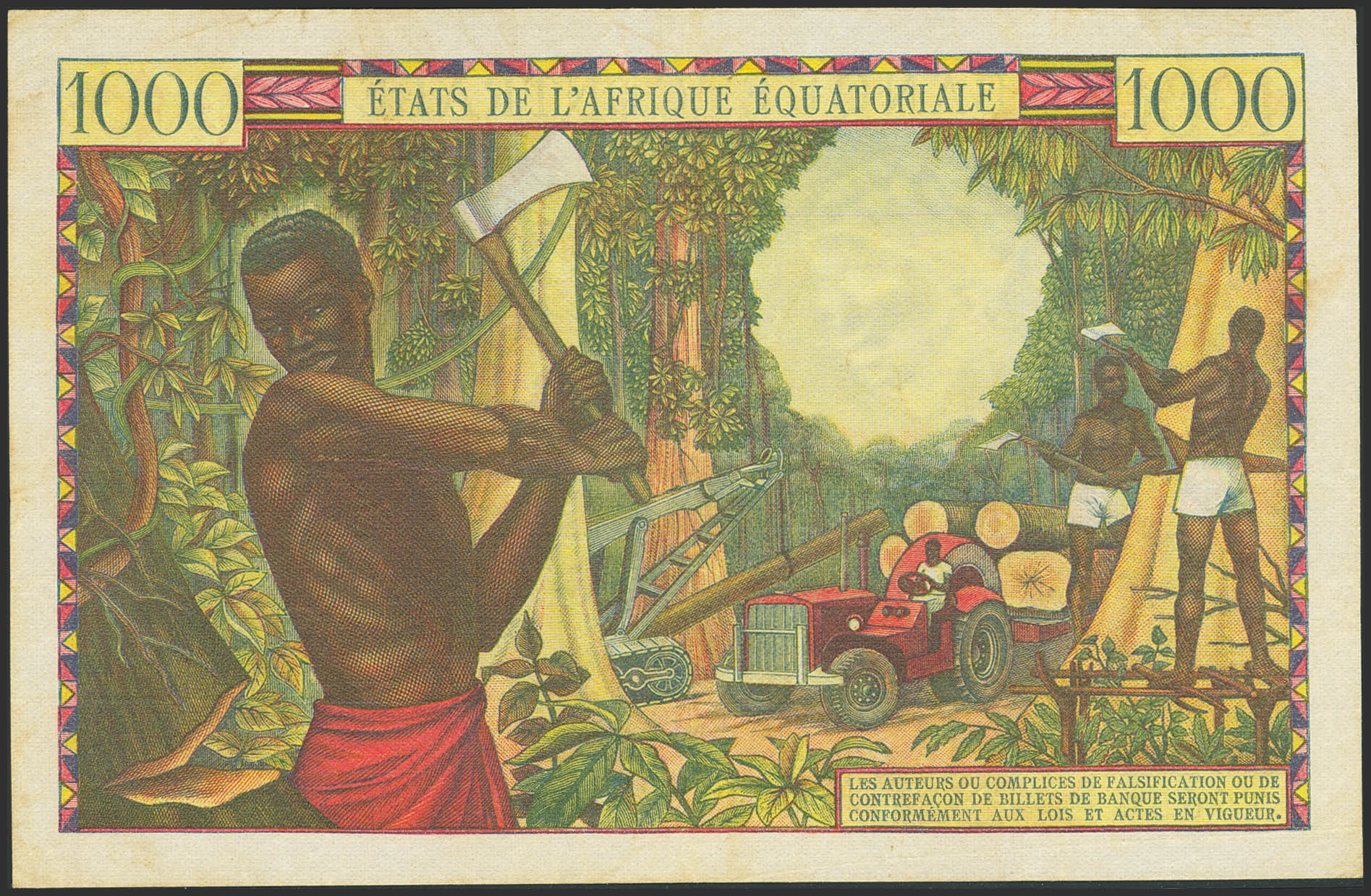 EQUATORIAL AFRICAN STATES. 1000 Francs. (1963ca). Banque Centrale. Central African Republic. (Pick: 5b). Very Fine.