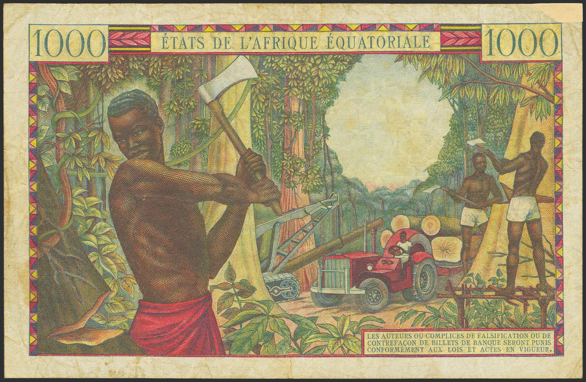 EQUATORIAL AFRICAN STATES. 1000 Francs. (1963ca). Banque Centrale. Congo. (Pick: 5c). Adhesive paper added over missing corner. More than Fine.
