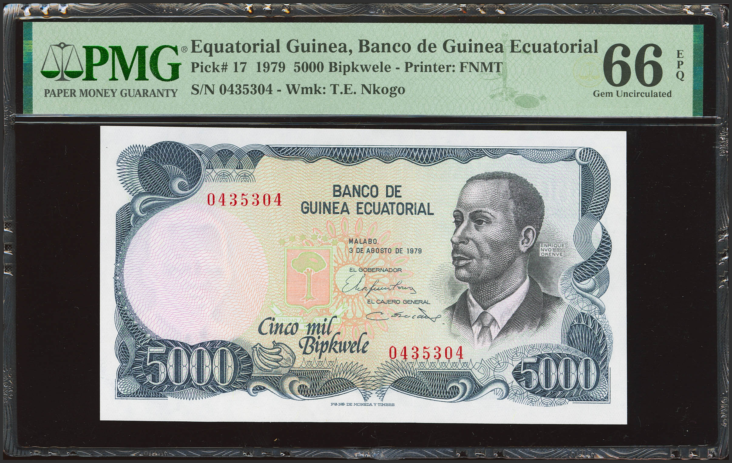 EQUATORIAL GUINEA. 5000 Bipkwele. 3 August 1979. Banco de Guinea Ecuatorial. (Pick: 17). PMG66EPQ.