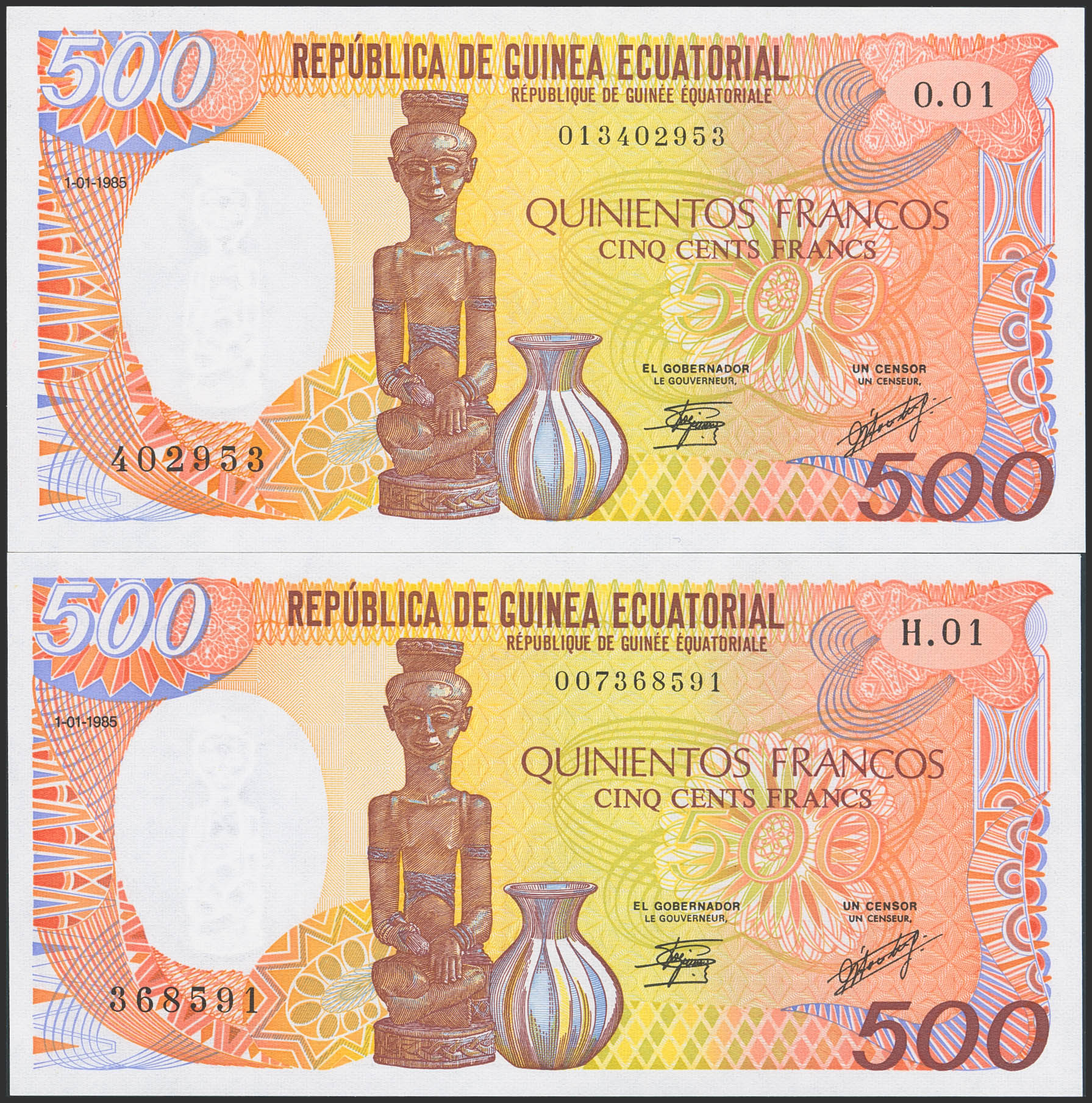 EQUATORIAL GUINEA. 500 Francs. 1 January 1985. Banque des Etats de l'Afrique Centrale. República de Guinea Ecuatorial. (Pick: 20). Uncirculated.