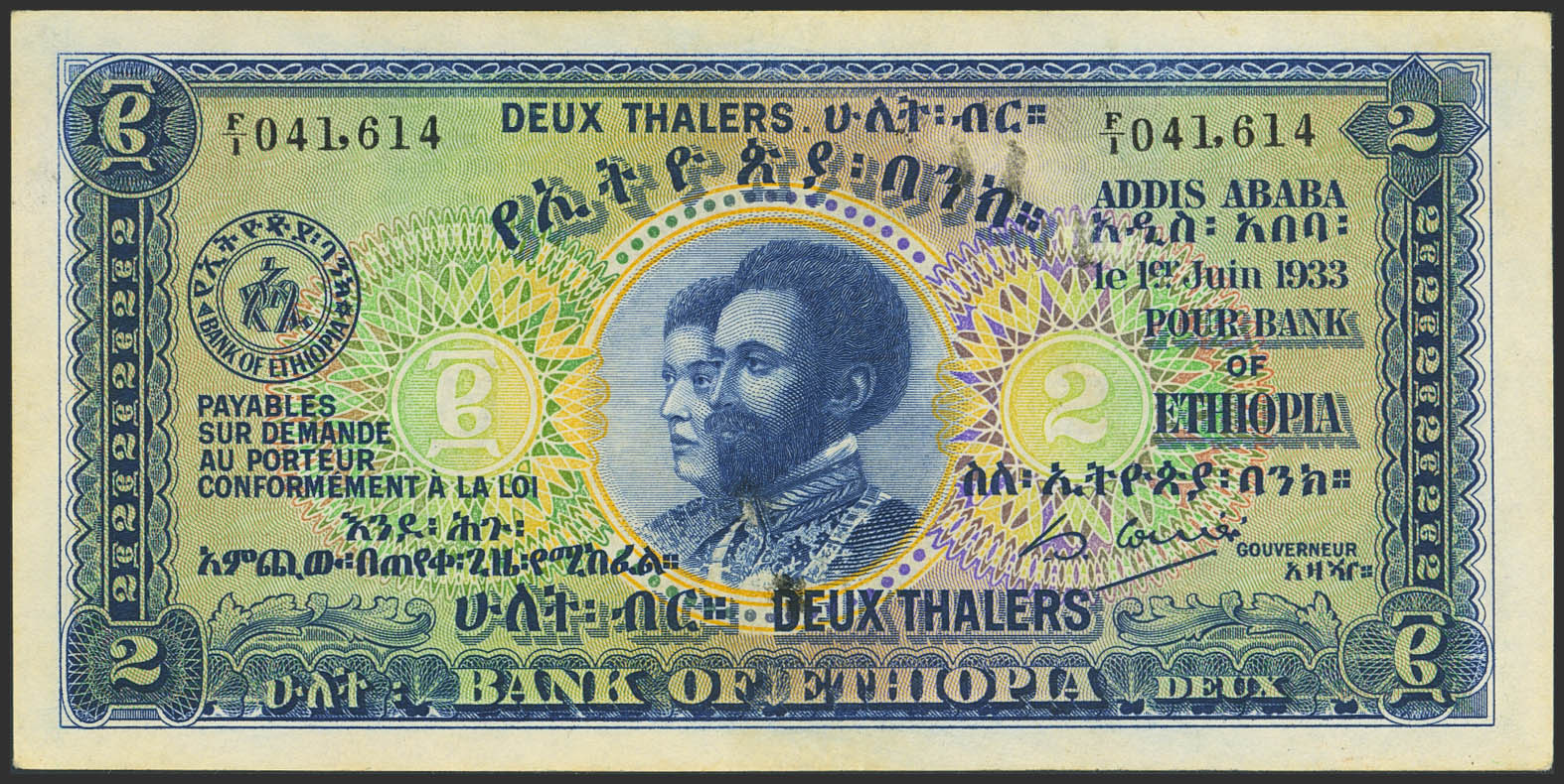 ETHIOPIA. 2 Thalers. 1 June 1933. Bank of Ethiopia. (Pick: 6). More than Extremely Fine.