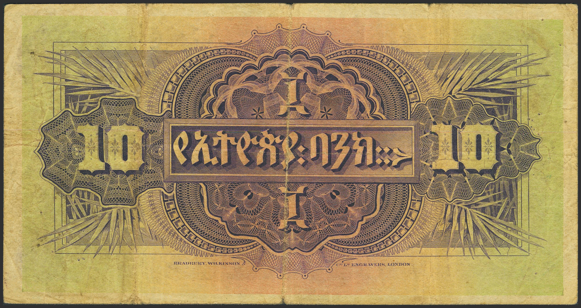 ETHIOPIA. 10 Thalers. 1 May 1932. Bank of Ethiopia. (Pick: 8). Pinholes. Very Fine.