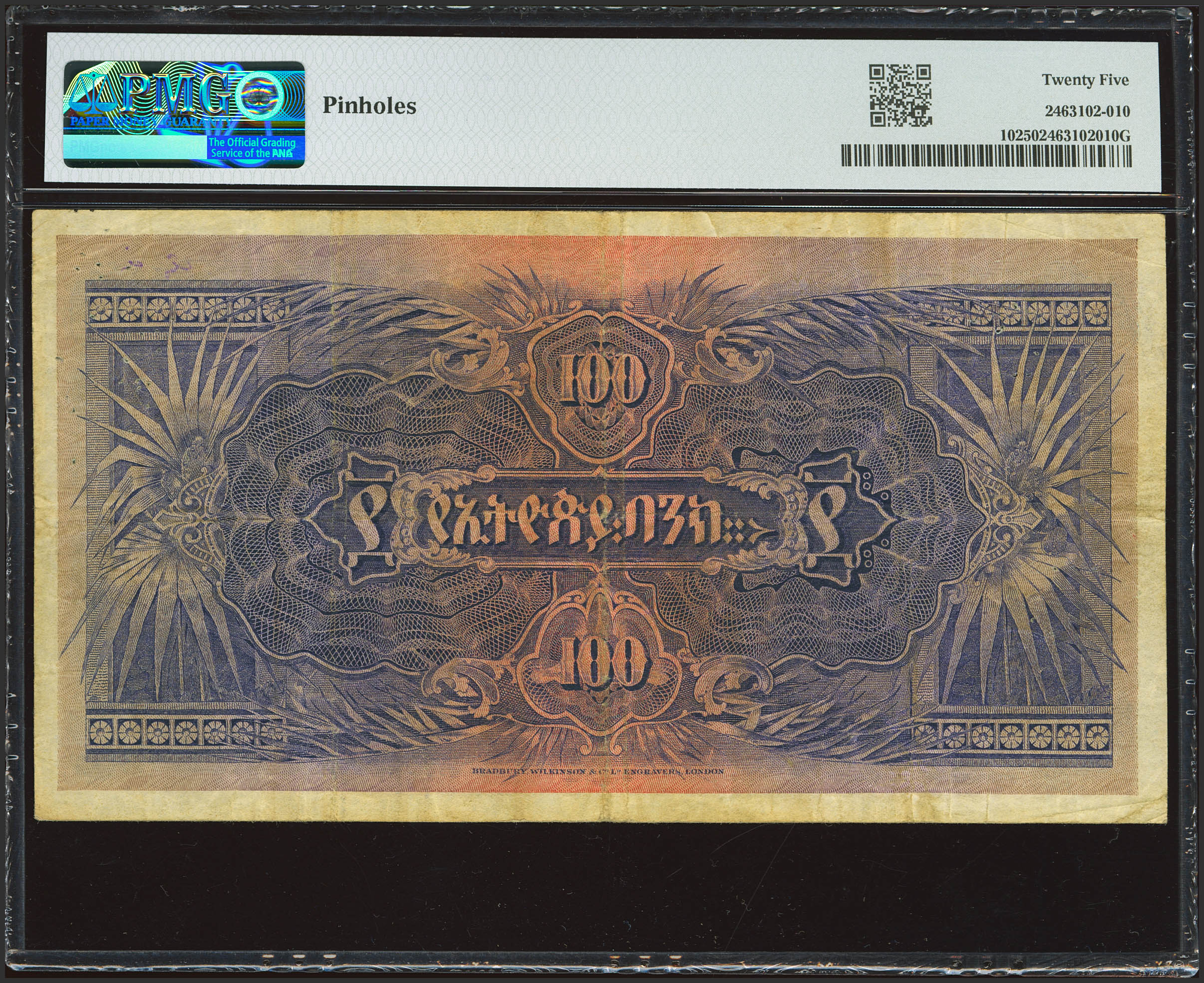 ETHIOPIA. 100 Thalers. 1 May 1932. Bank of Ethiopia. (Pick: 10). PMG25 (pinholes).