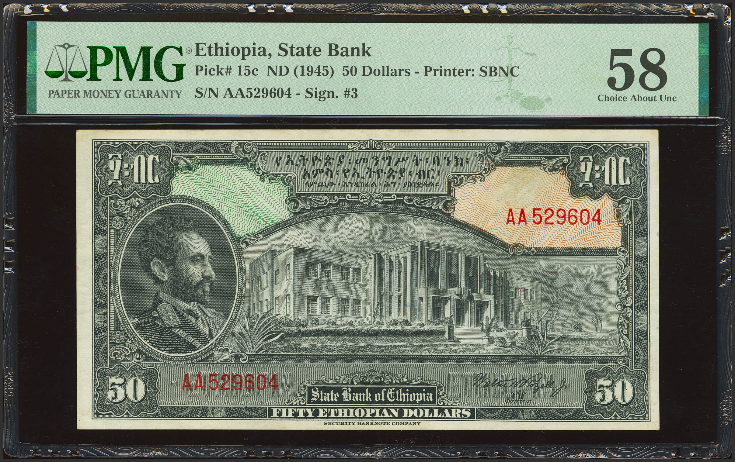 ETHIOPIA. 50 Ethiopian Dollars. (1945ca). State Bank. (Pick: 15c). PMG58 (erasure).