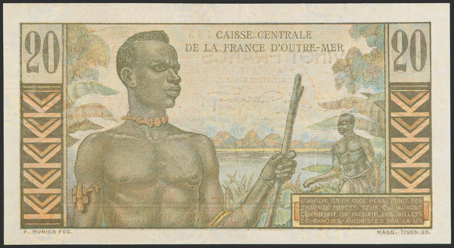 FRENCH EQUATORIAL AFRICA. 20 Francs. (1947ca). Caisse Centrale de la France d'Outre-Mer. (Pick: 22). Almost Uncirculated.