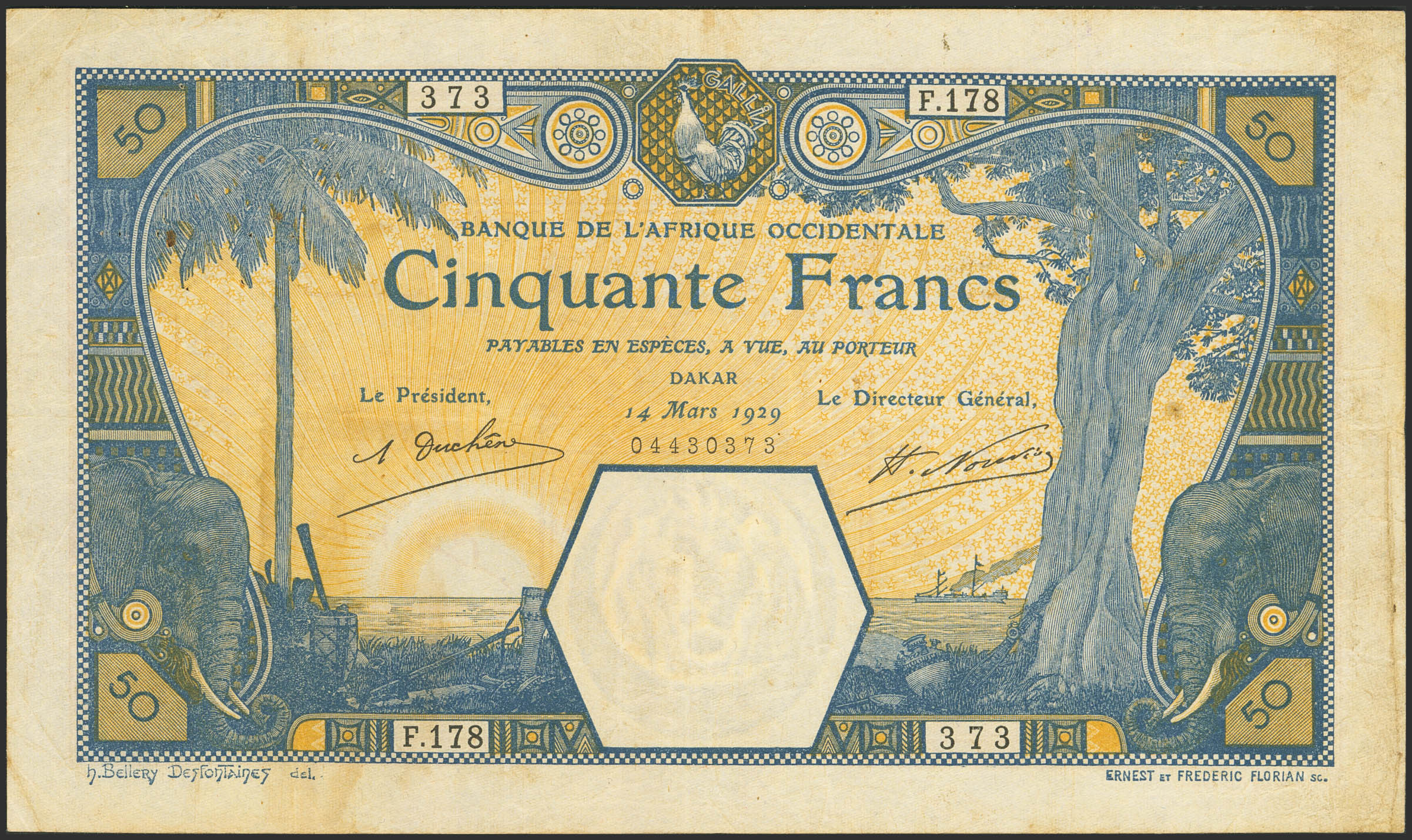FRENCH WEST AFRICA. 50 Francs. 14 March 1929. Banque de l'Afrique Occidentale. Dakar. (Pick: 9Bc). Pinholes. Very Fine.