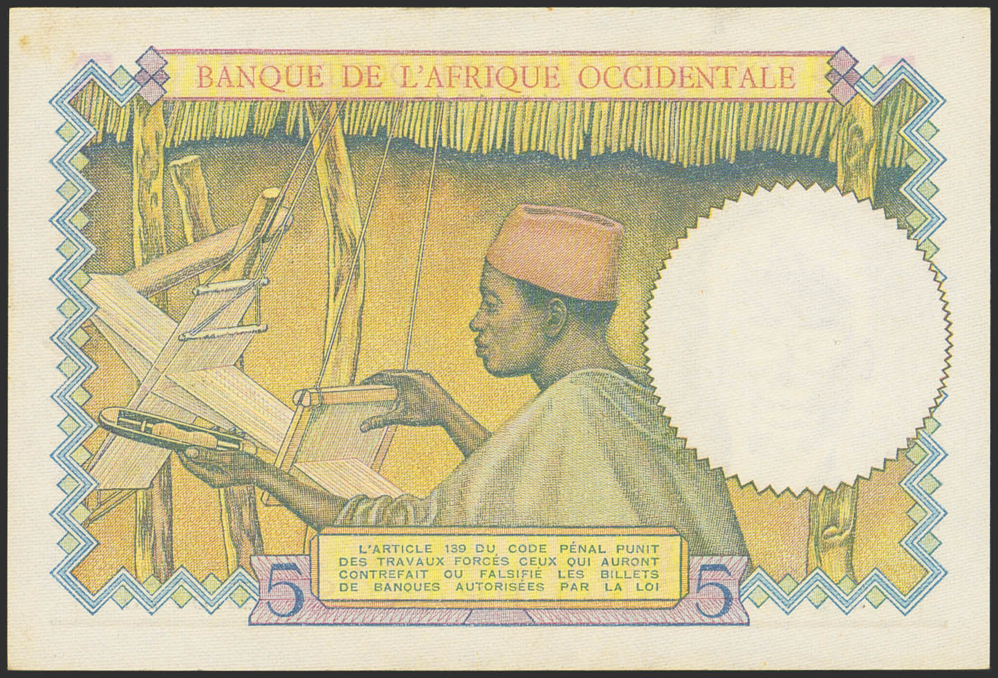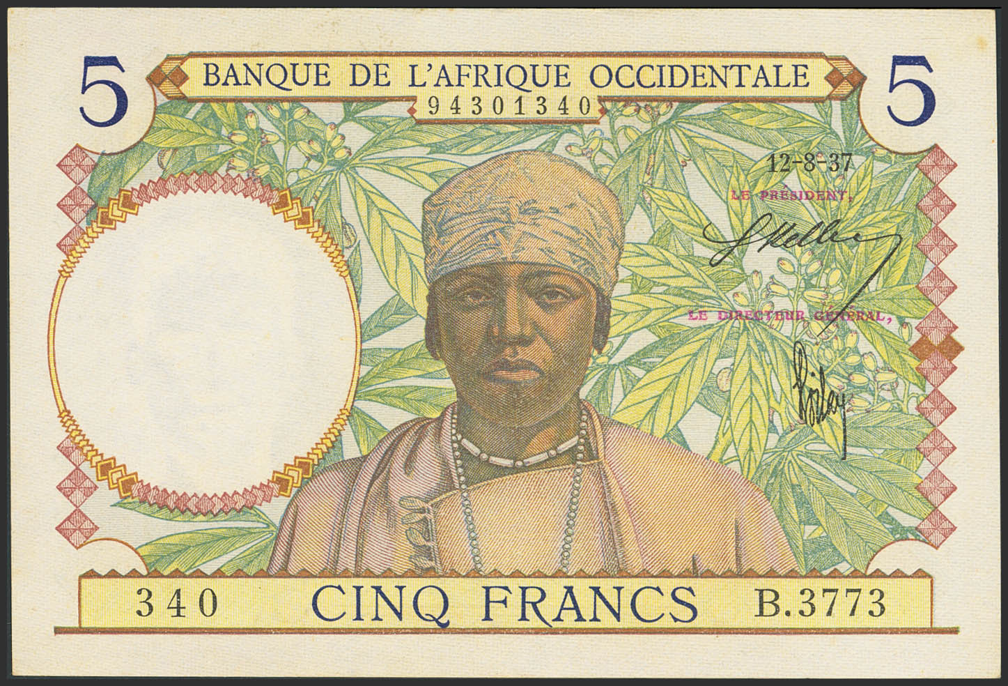 FRENCH WEST AFRICA. 5 Francs. 12 August 1937. Banque de l'Afrique Occidentale. (Pick: 21). Uncirculated.