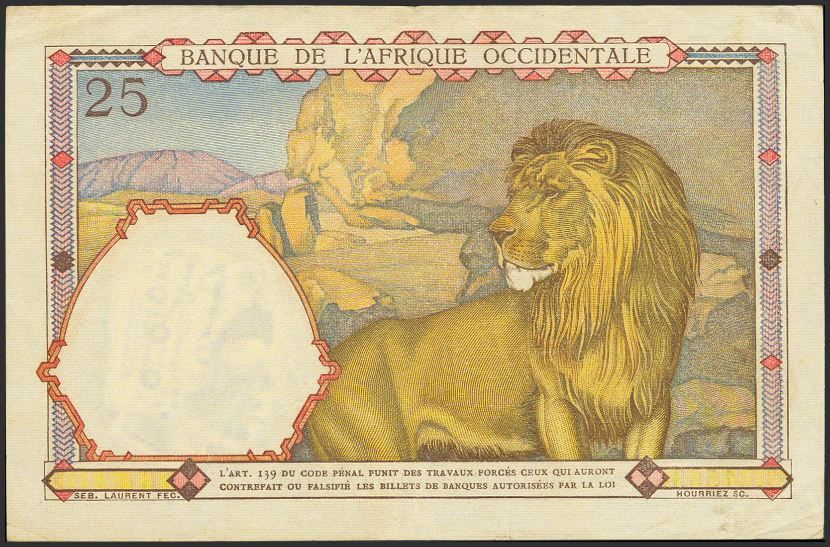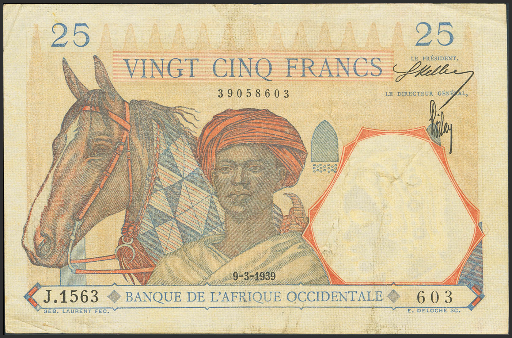 FRENCH WEST AFRICA. 25 Francs. 9 March 1939. Banque de l'Afrique Occidentale. (Pick: 22). Extremely Fine.