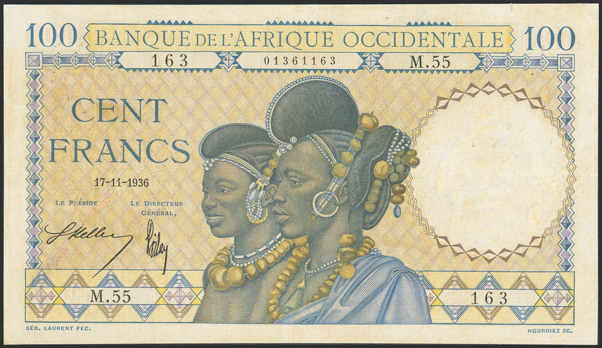 FRENCH WEST AFRICA. 100 Francs. 17 November 1936. Banque de l'Afrique Occidentale. (Pick: 23). Pinholes. Very Fine.