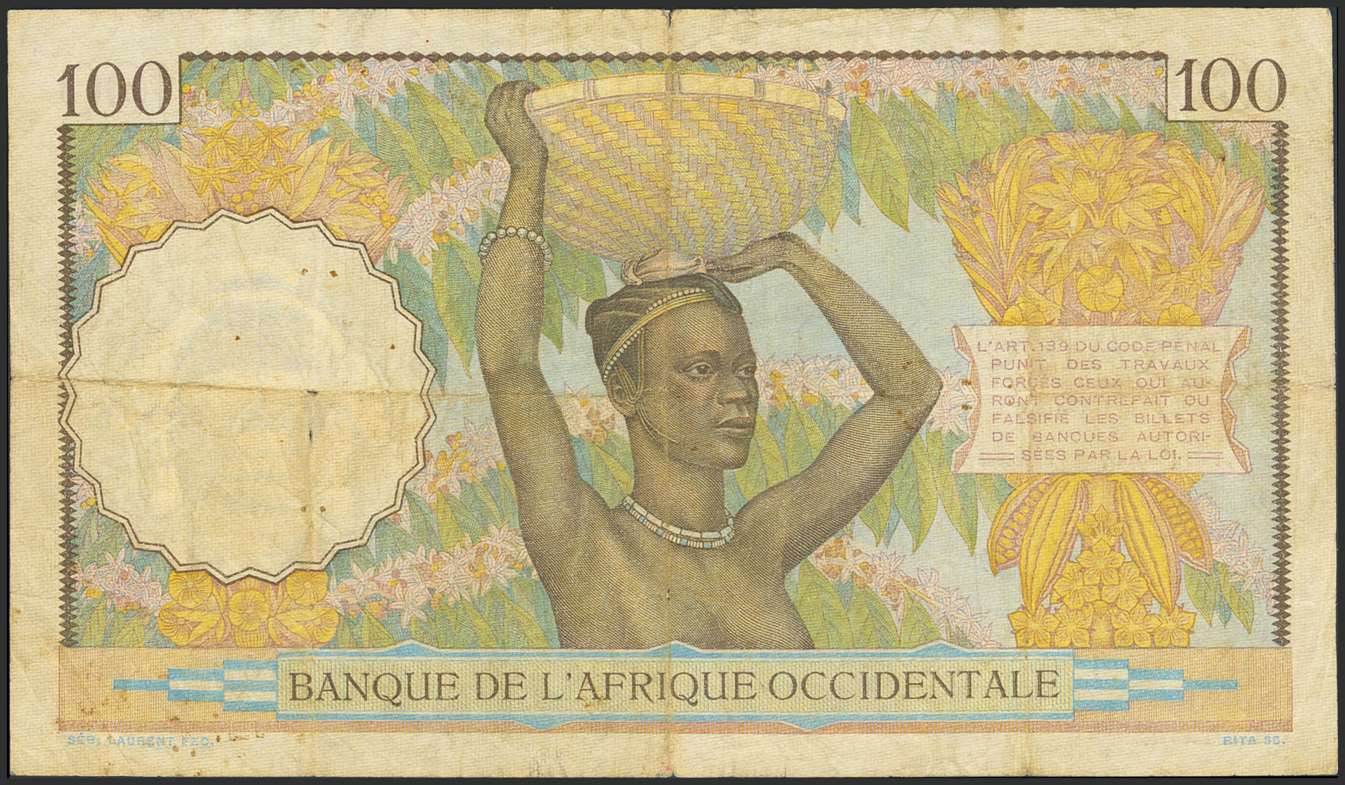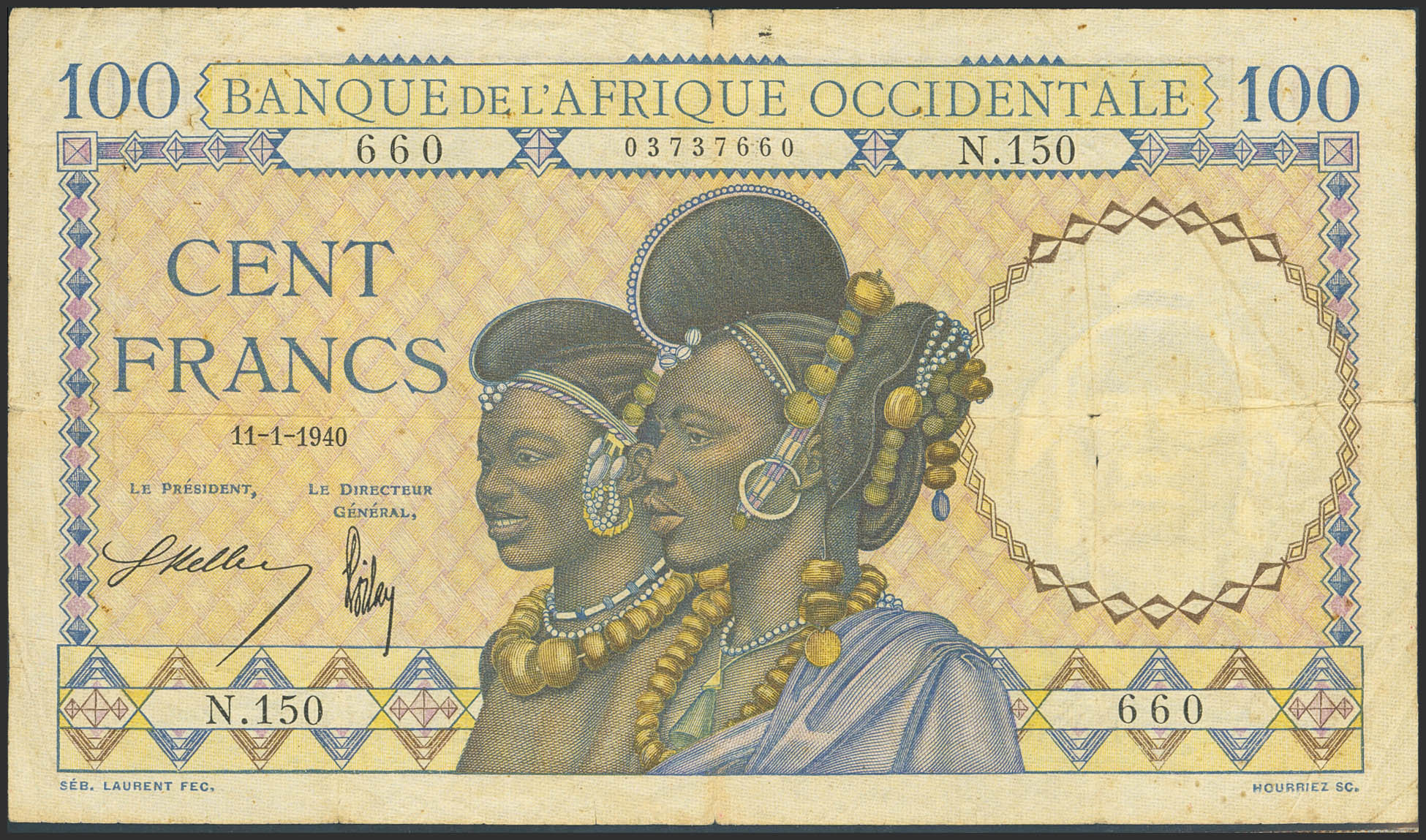 FRENCH WEST AFRICA. 100 Francs. 11 January 1940. Banque de l'Afrique Occidentale. (Pick: 23). Very Fine.