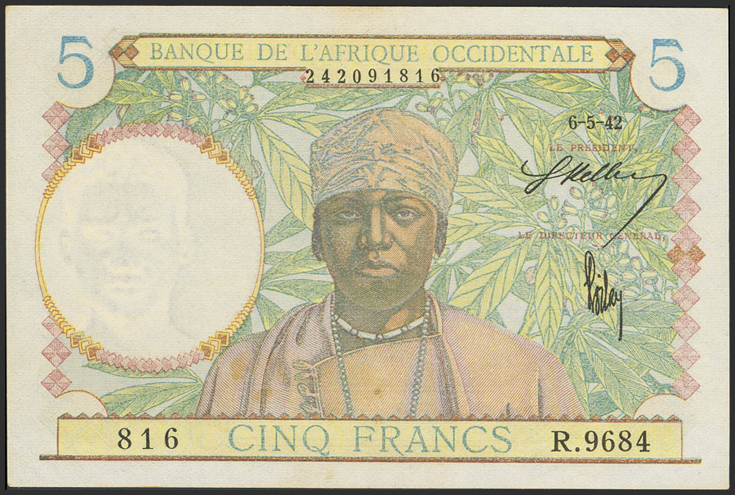 FRENCH WEST AFRICA. 5 Francs. 6 May 1942. Banque de l'Afrique Occidentale. (Pick: 25). Almost Uncirculated.