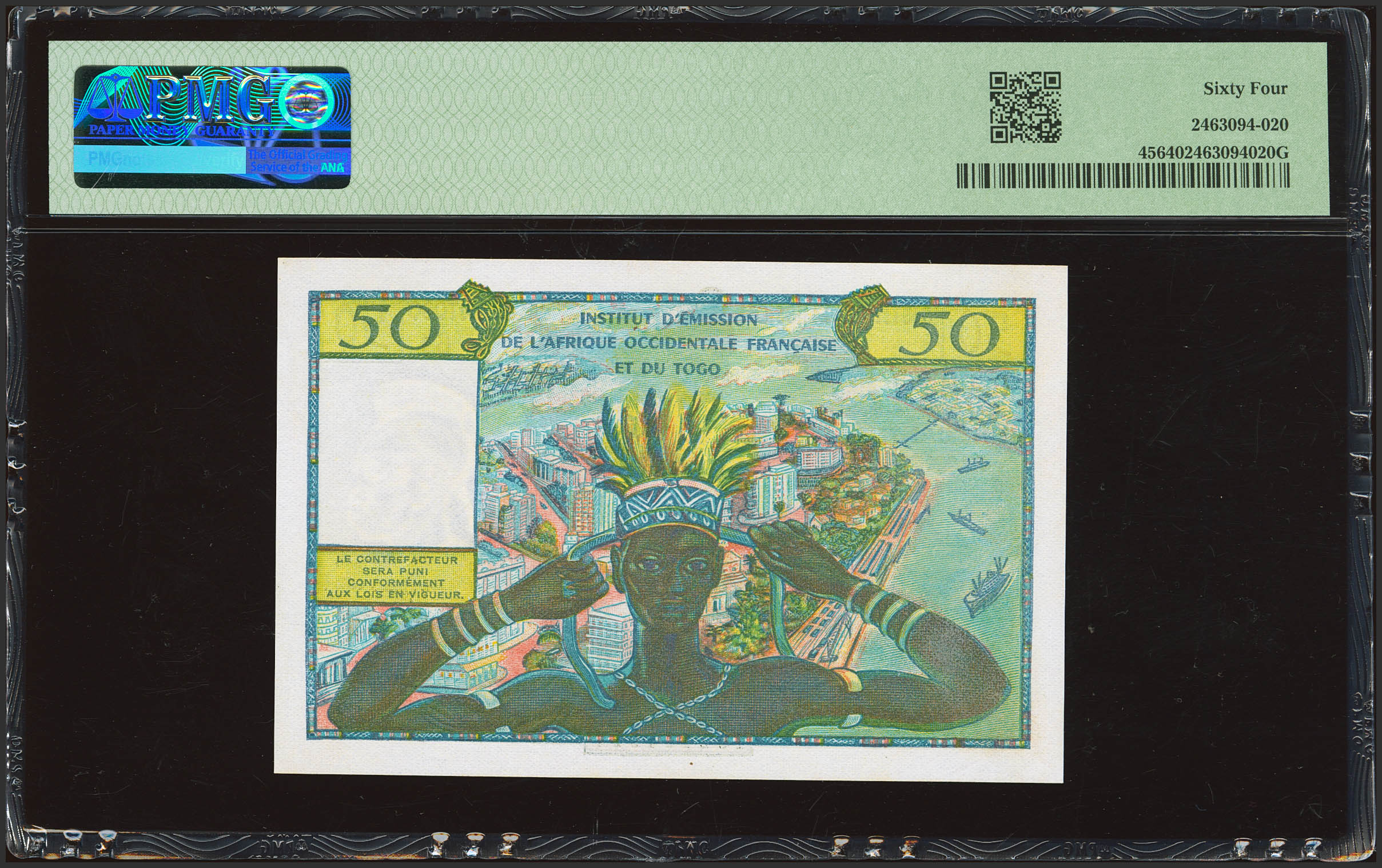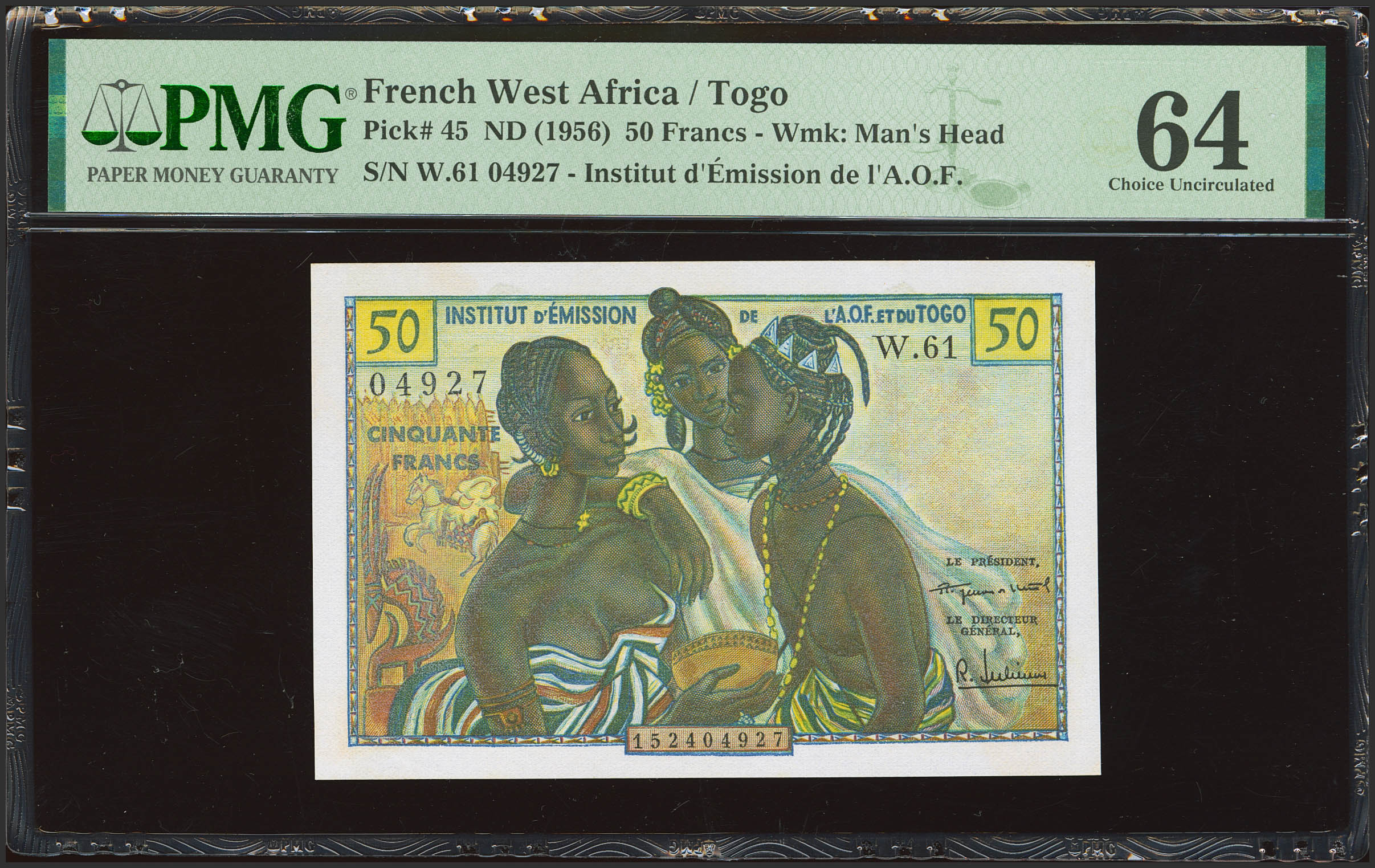FRENCH WEST AFRICA. 50 Francs. (1956ca). Institut d'Emission de l'Afrique Occidentale Francaise et du Togo. (Pick: 45). PMG64.