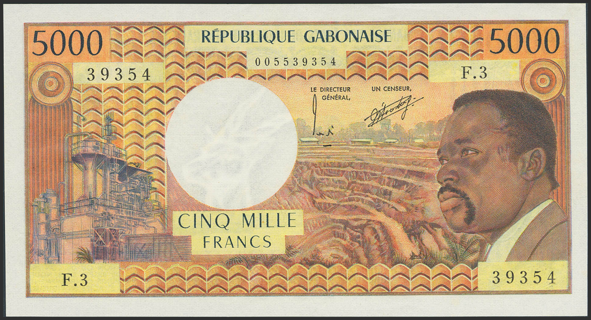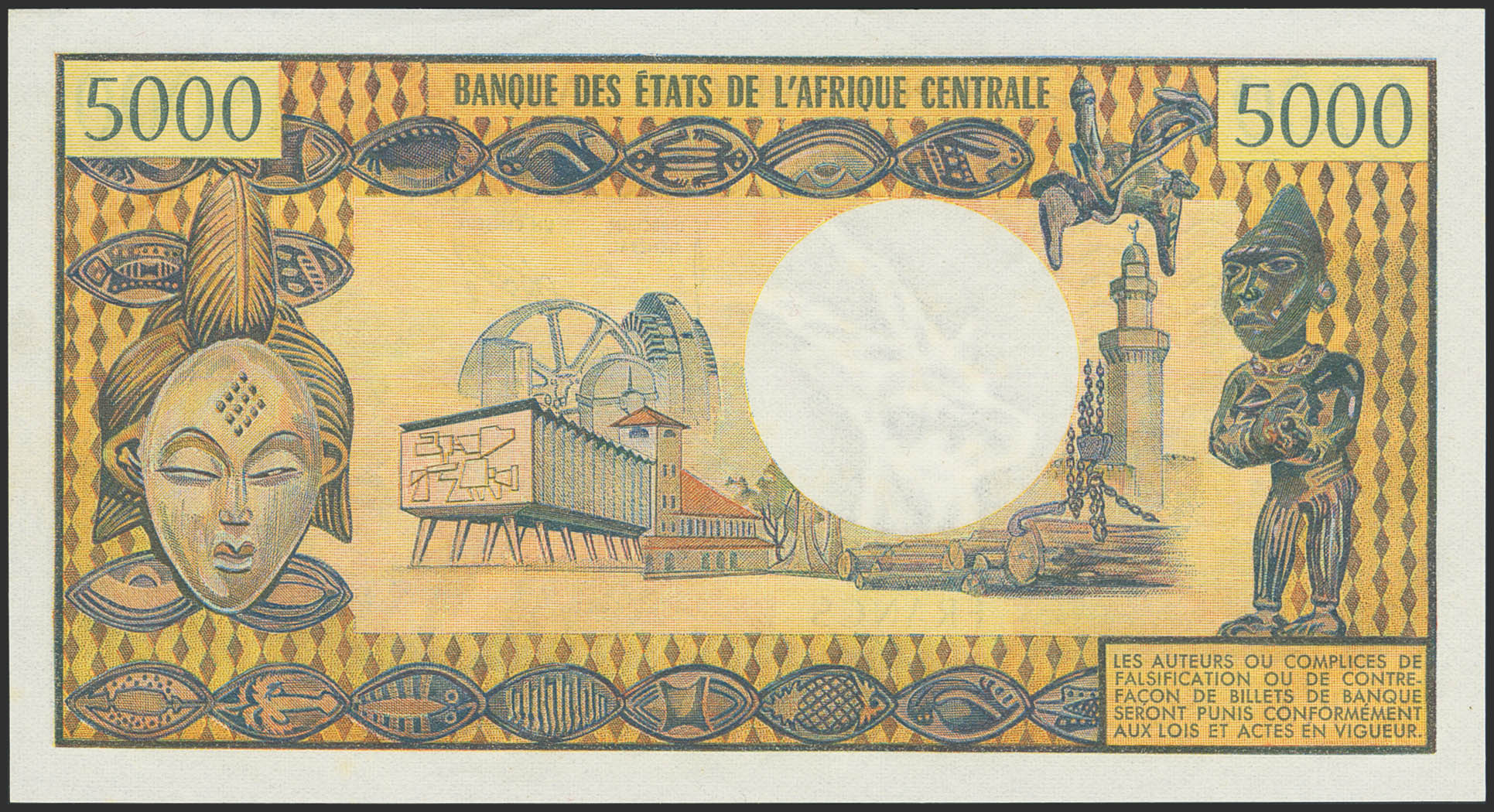 GABON. 5000 Francs. (1974ca). Banque des Etats de l'Afrique Centrale. (Pick: 4b). Almost Uncirculated.