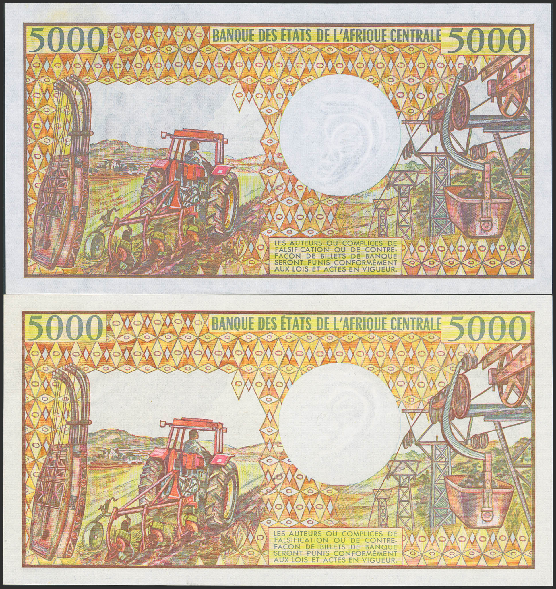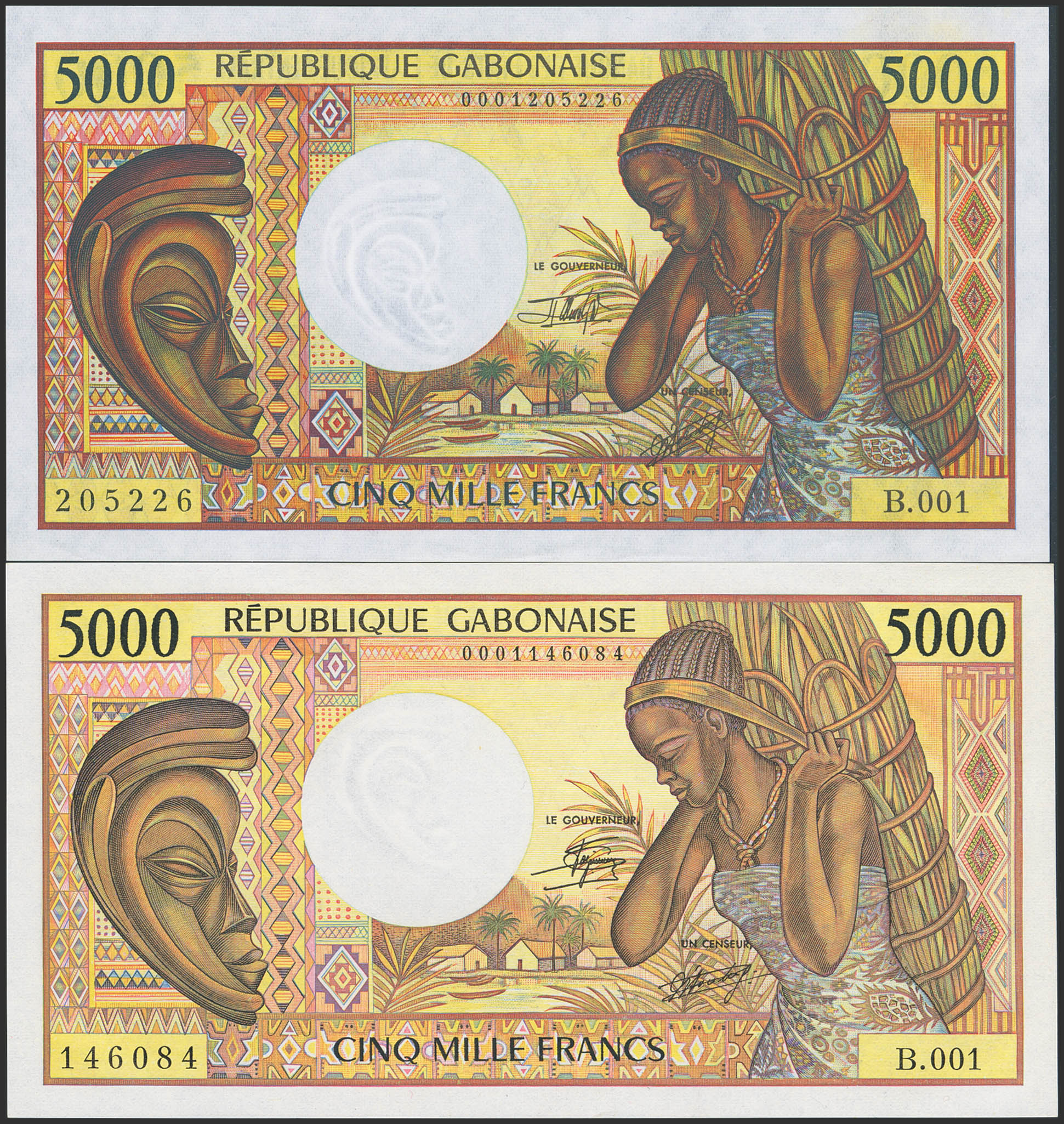 GABON. Lot of 2 notes of 5000 Francs. (1984 and 1991ca). Banque des Etats de l'Afrique Centrale. Republique Gabonaise. (Pick: 6a, 6b). Almost Uncirculated.