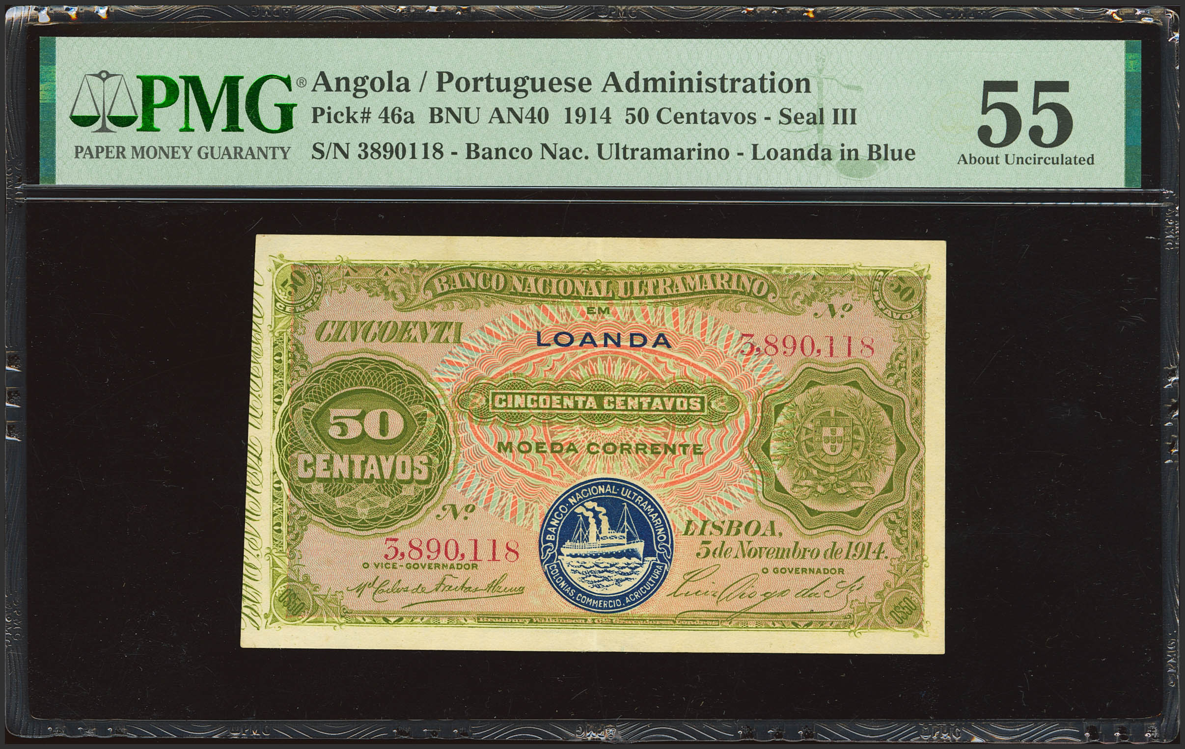 ANGOLA. 50 Centavos. 5 November 1914. Banco Nacional Ultramarino. (Pick: 46a). PMG55.