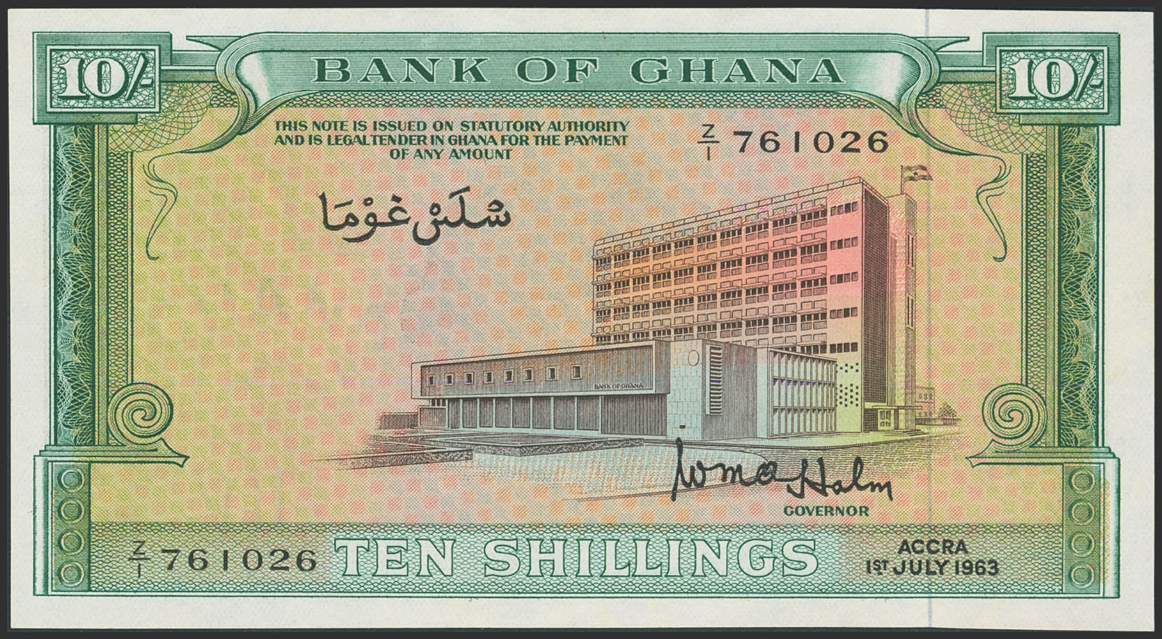 GHANA. 10 Shillings. 1 July 1963. Bank of Ghana. (Pick: 1d). Uncirculated.