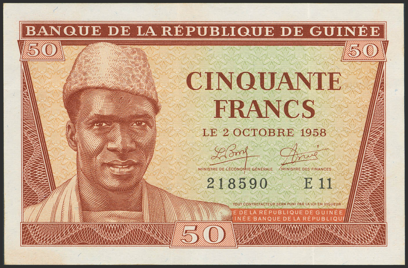GUINEA. 50 Francs. 2 October 1958. Banque de la Republique. (Pick: 6). Extremely Fine.