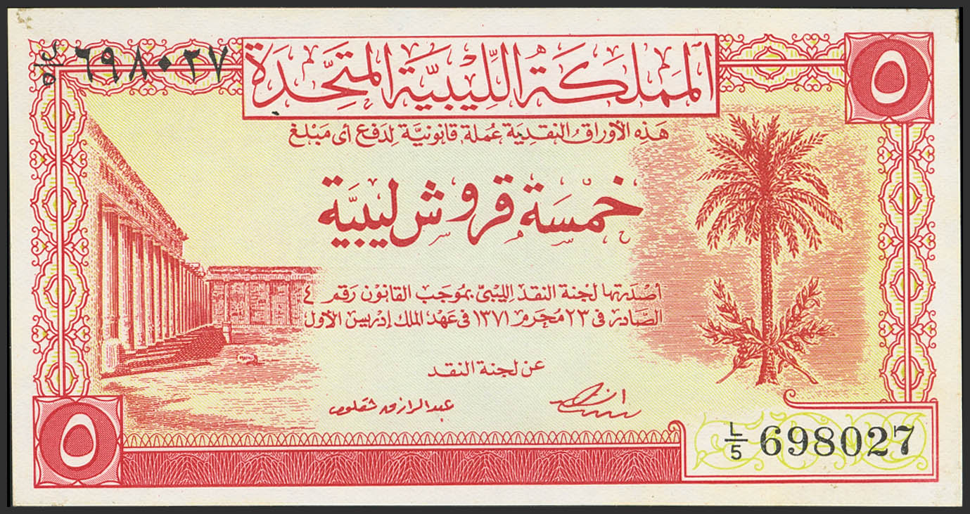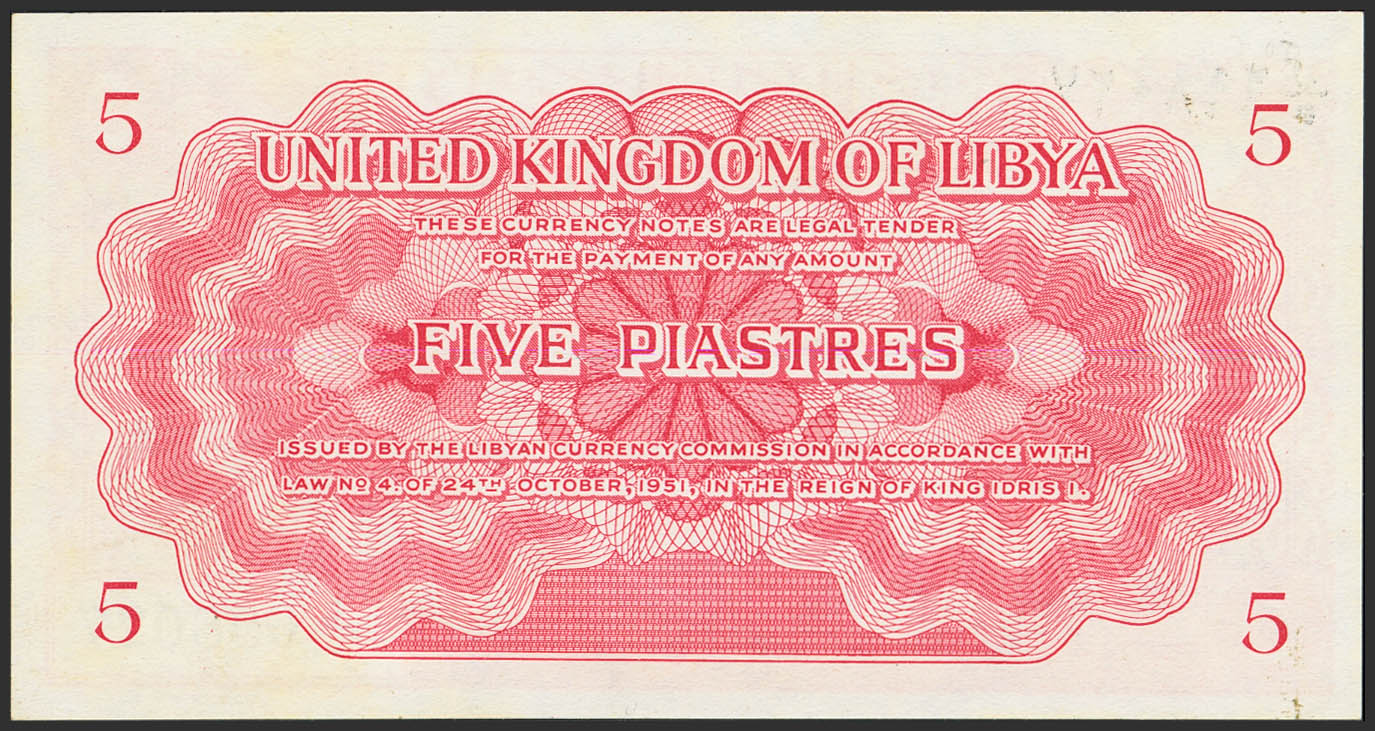 LIBYA. 5 Piastres. 24 October 1951. Libyan Currency Commission. (Pick: 5). Uncirculated.