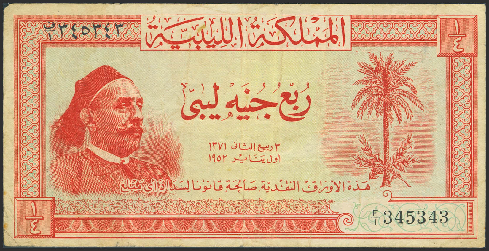 LIBYA. ¼ Libyan Pound. 1 January 1952. Kingdom of Libya. (Pick: 14). Very Fine.