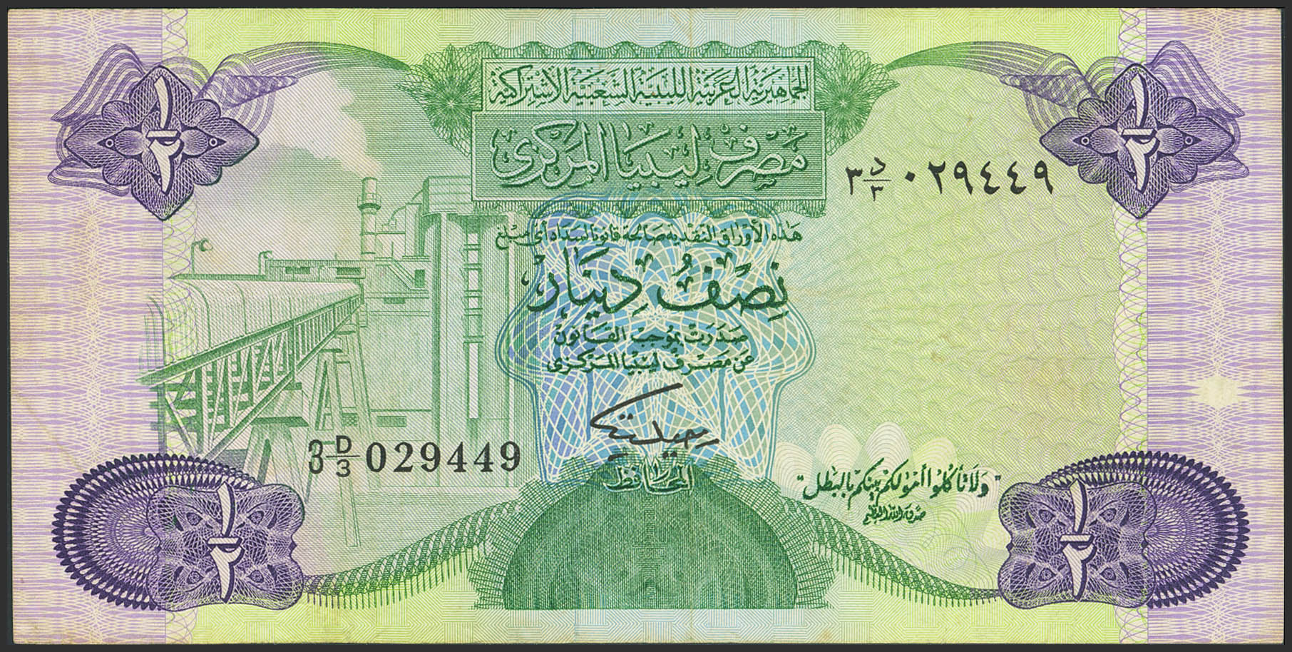 LIBYA. ½ Dinar. (1984ca). Central Bank. (Pick: 48). Very Fine.