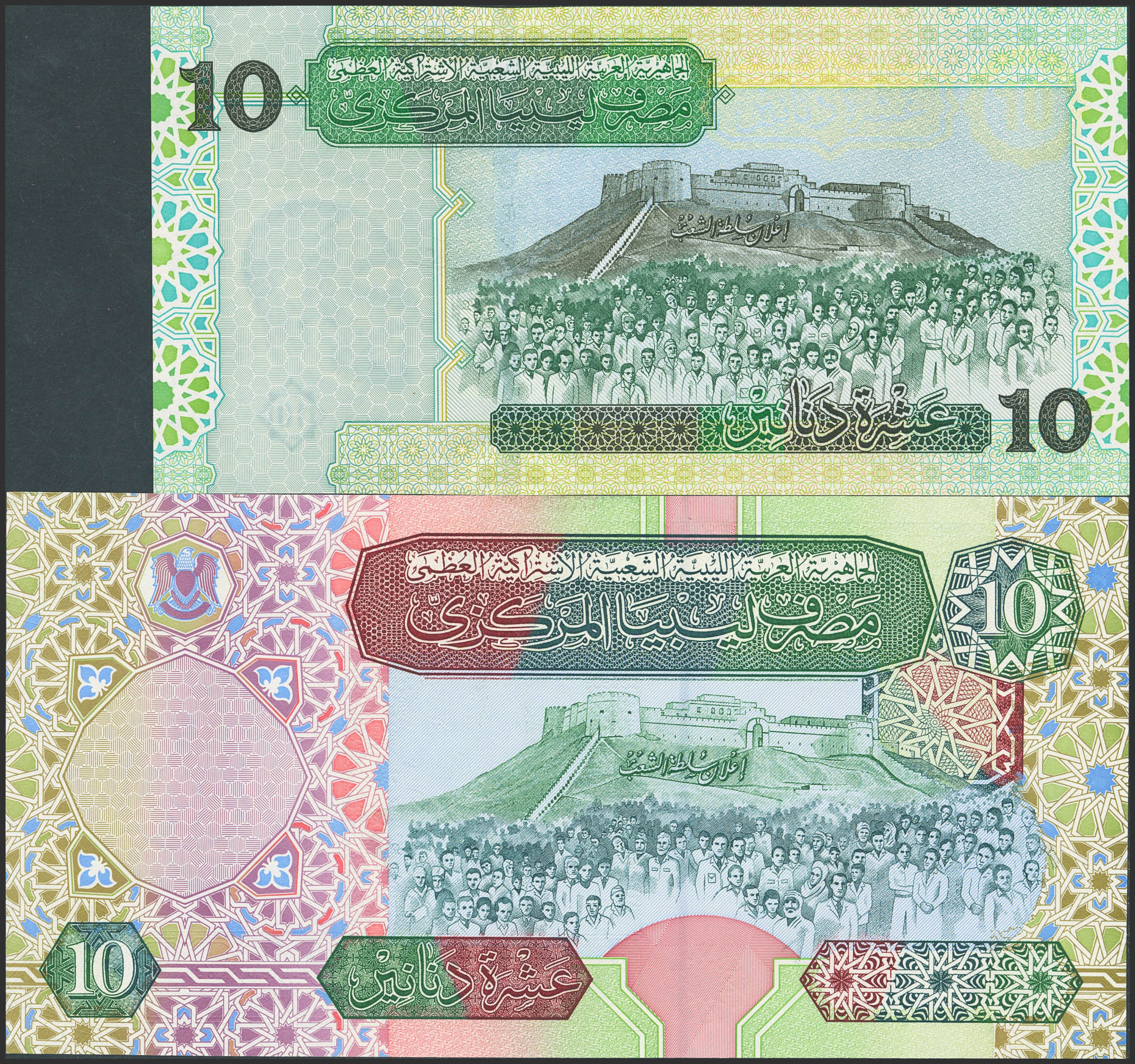 LIBYA. Lot of 2 notes of 10 Dinars. 2002 and 2004. Central Bank. (Pick: 66, 70a). Uncirculated.