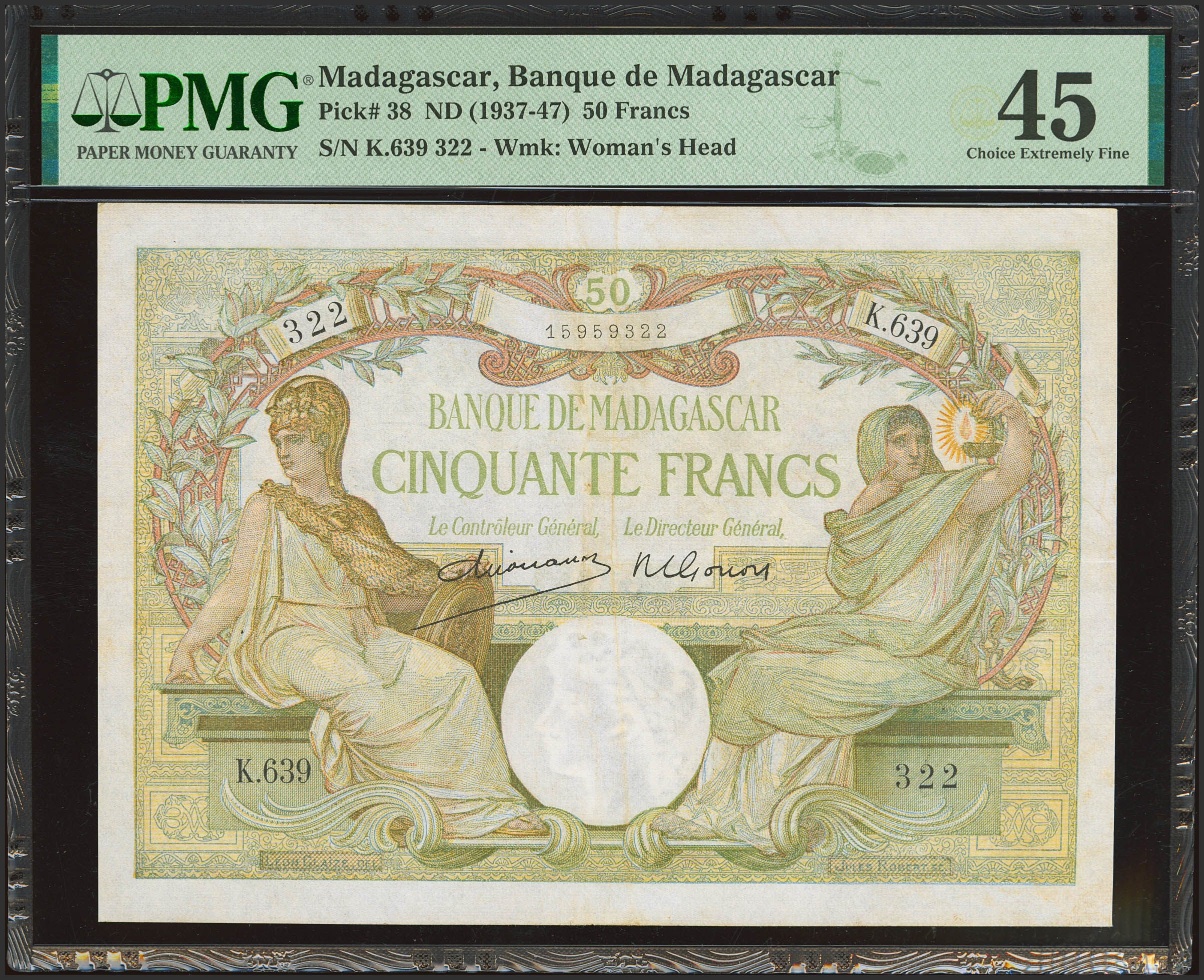 MADAGASCAR. 50 Francs. (1937ca). Banque de Madagascar. (Pick: 38). PMG45.