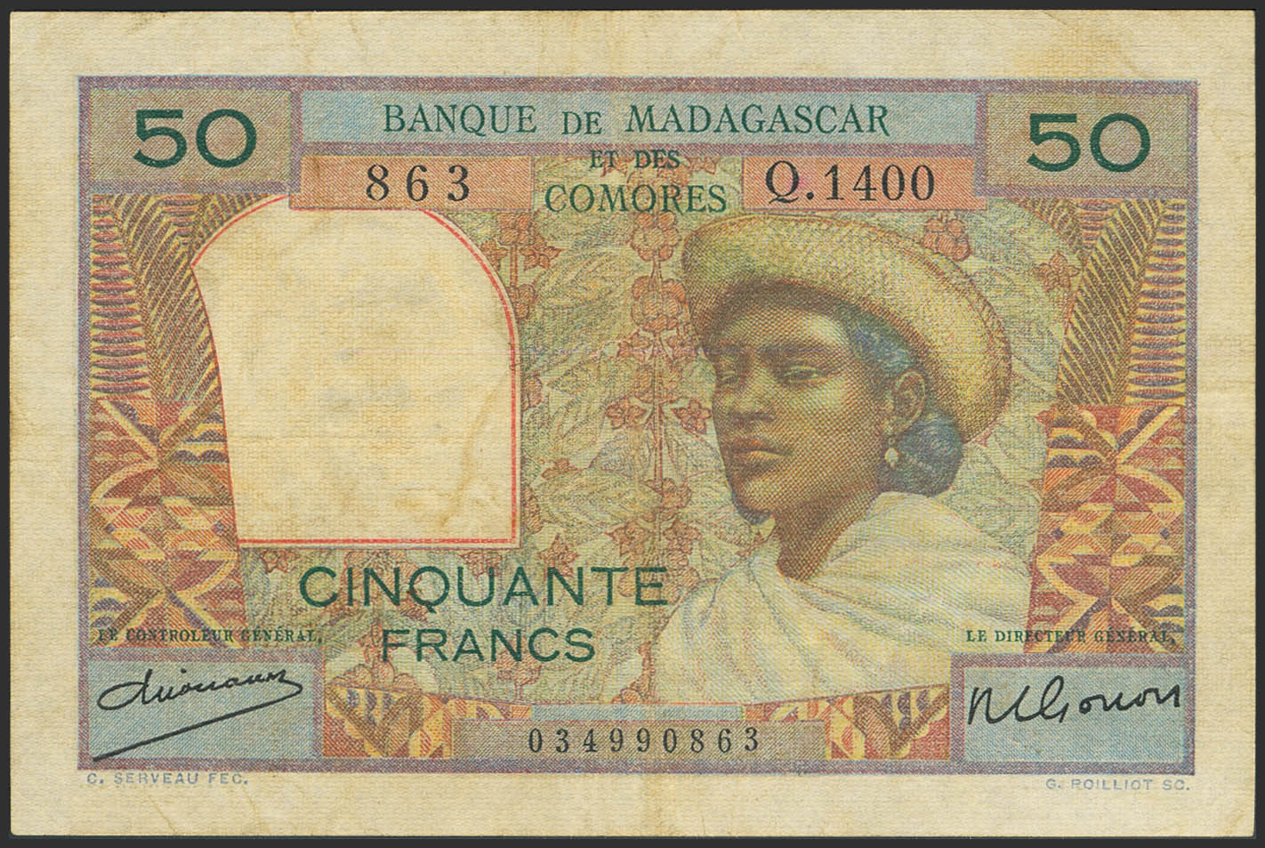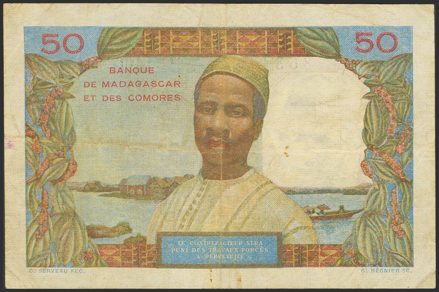 MADAGASCAR. 50 Francs. (1950ca). Banque de Madagascar et des Comores. (Pick: 45a). Very Fine.