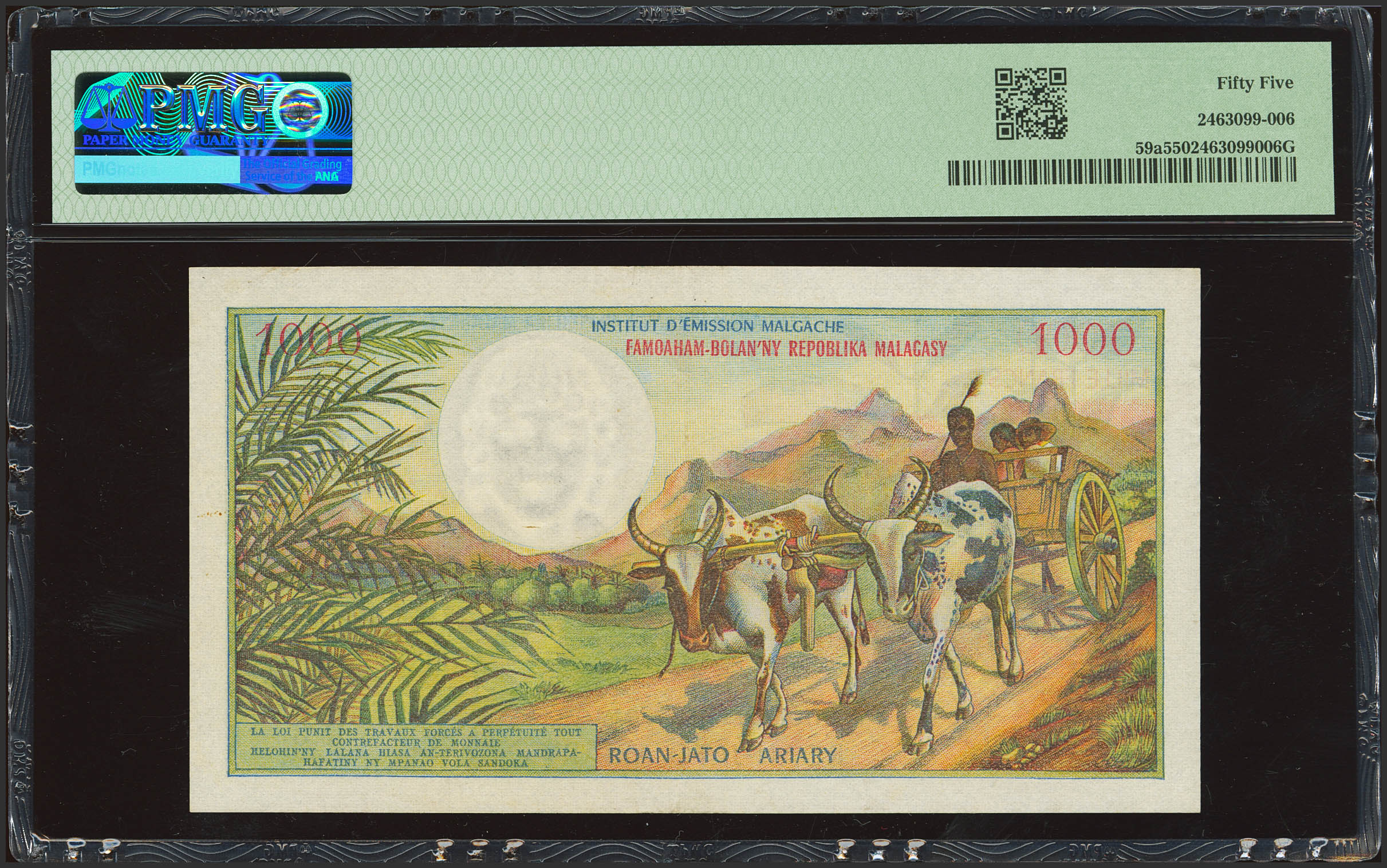 MADAGASCAR. 1000 Francs. (1966ca). Institut d'Emission Malgache. (Pick: 59a). PMG55.