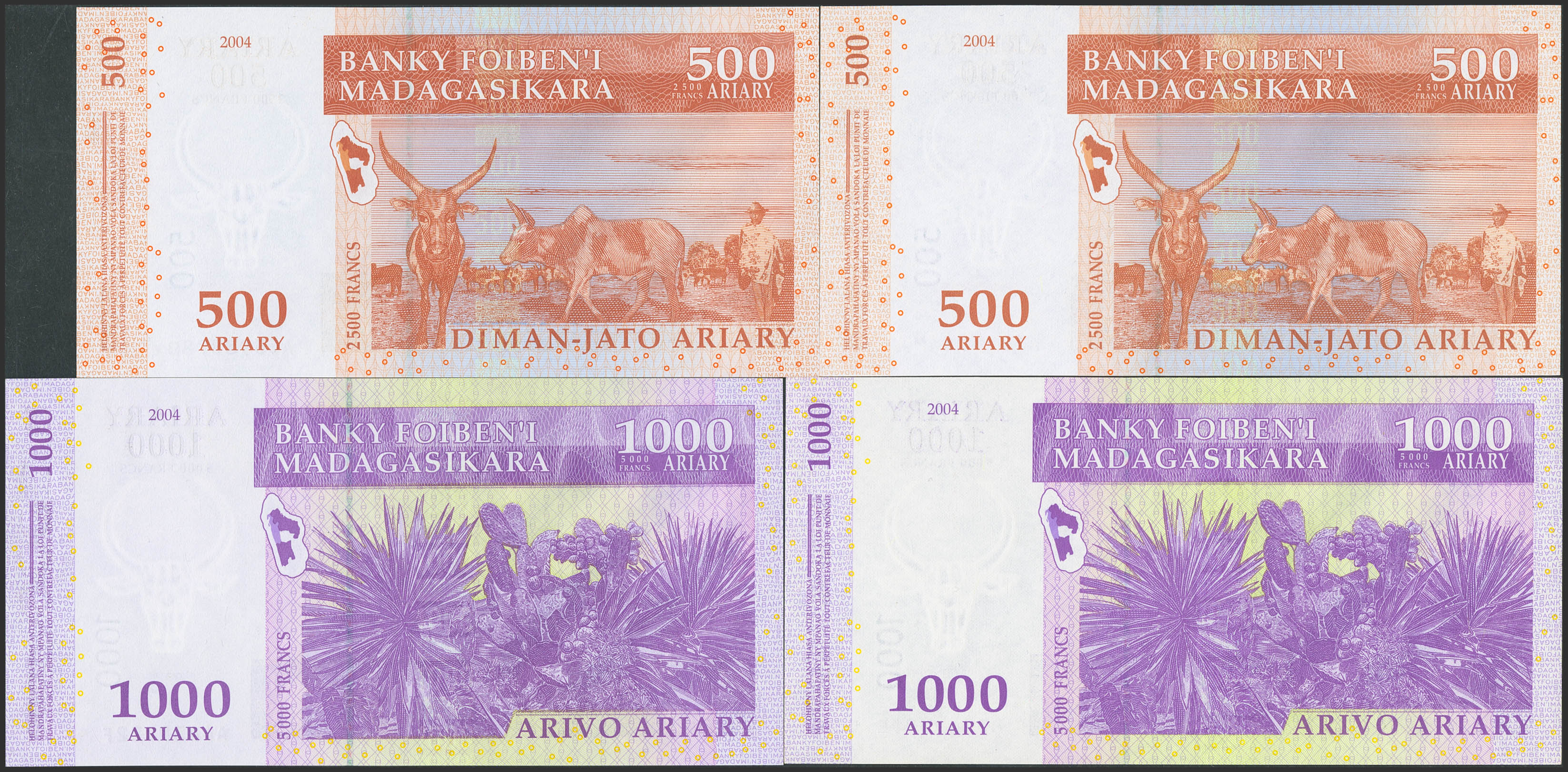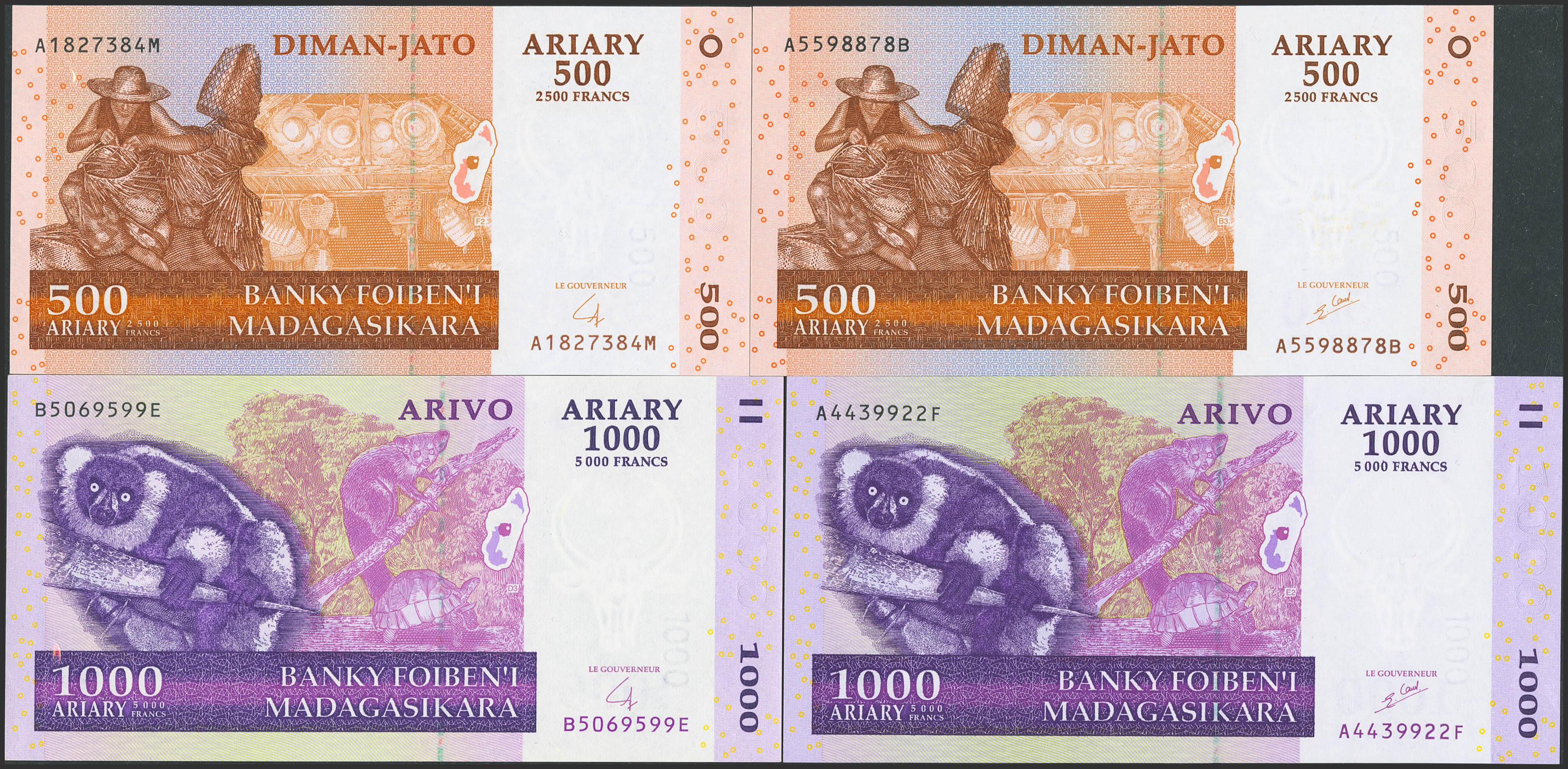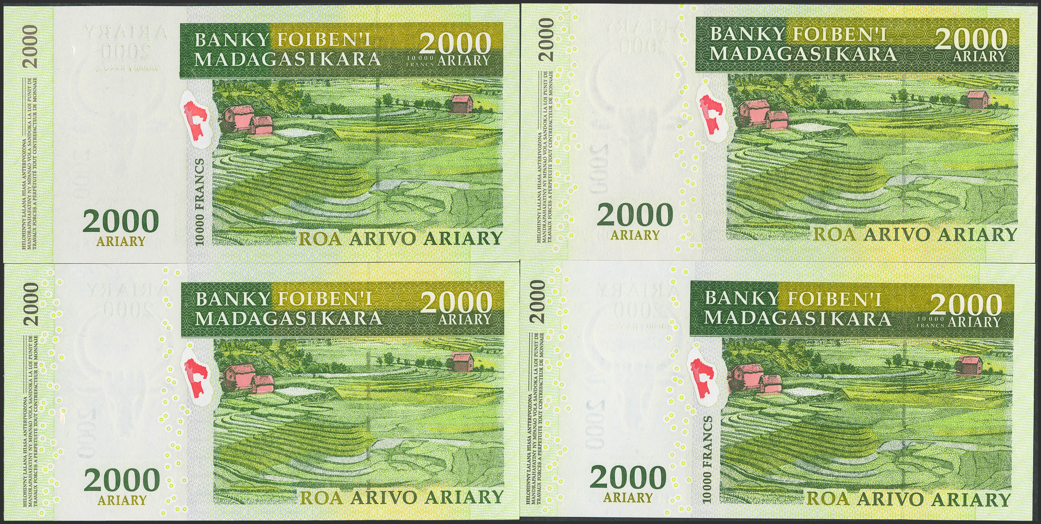 MADAGASCAR. Lot of 16 notes from 100 to 2000 Ariary. 2003 to 2007. Banky Foiben'i Madagasikara. (Pick: 83, 86a(2), 86b, 86c, 87a, 87b, 87c, 88a, 88b(2), 89a, 89b, 90b(2), 93a). Uncirculated.