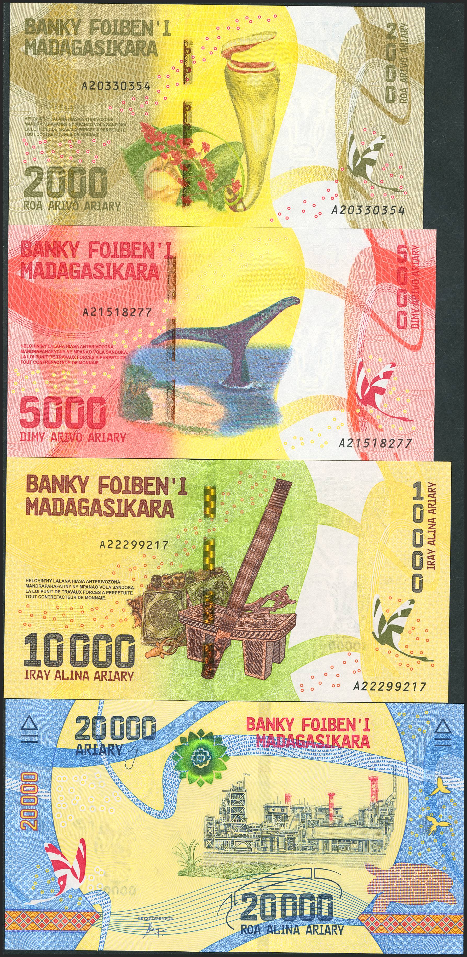 MADAGASCAR. Lot of 4 notes from 2000 to 20000 Ariary. (2017ca). Banky Foiben'i Madagasikara. (Pick: 101, 102, 103, 104). Uncirculated.
