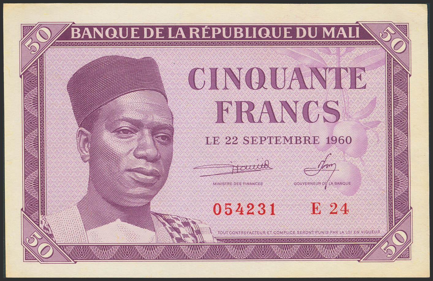 MALI. 50 Francs. 22 September 1960. Banque de la Republique. (Pick: 1). Less than Uncirculated.