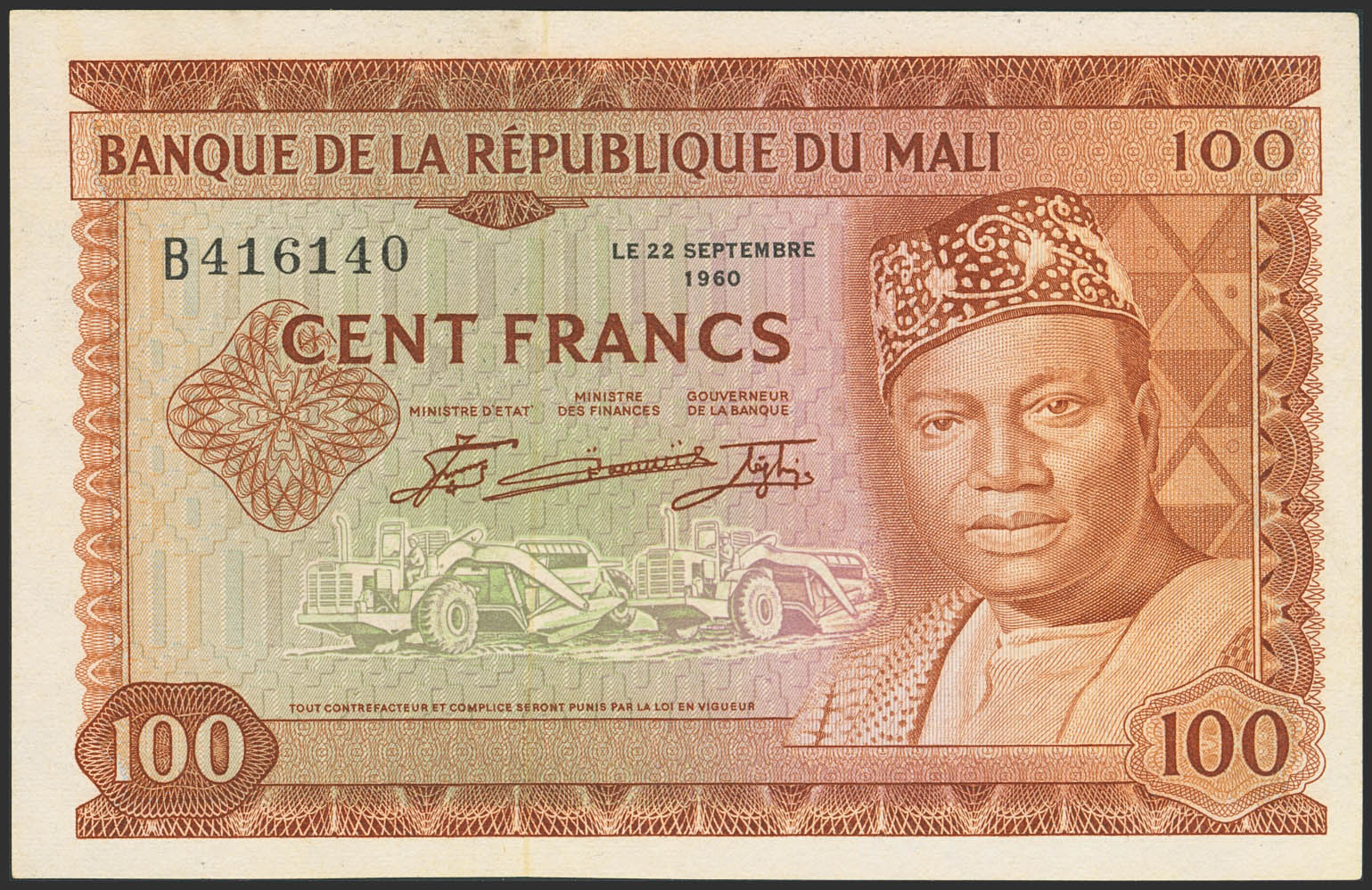 MALI. 100 Francs. 22 September 1960. Banque de la Republique. (Pick: 7). Almost Uncirculated.