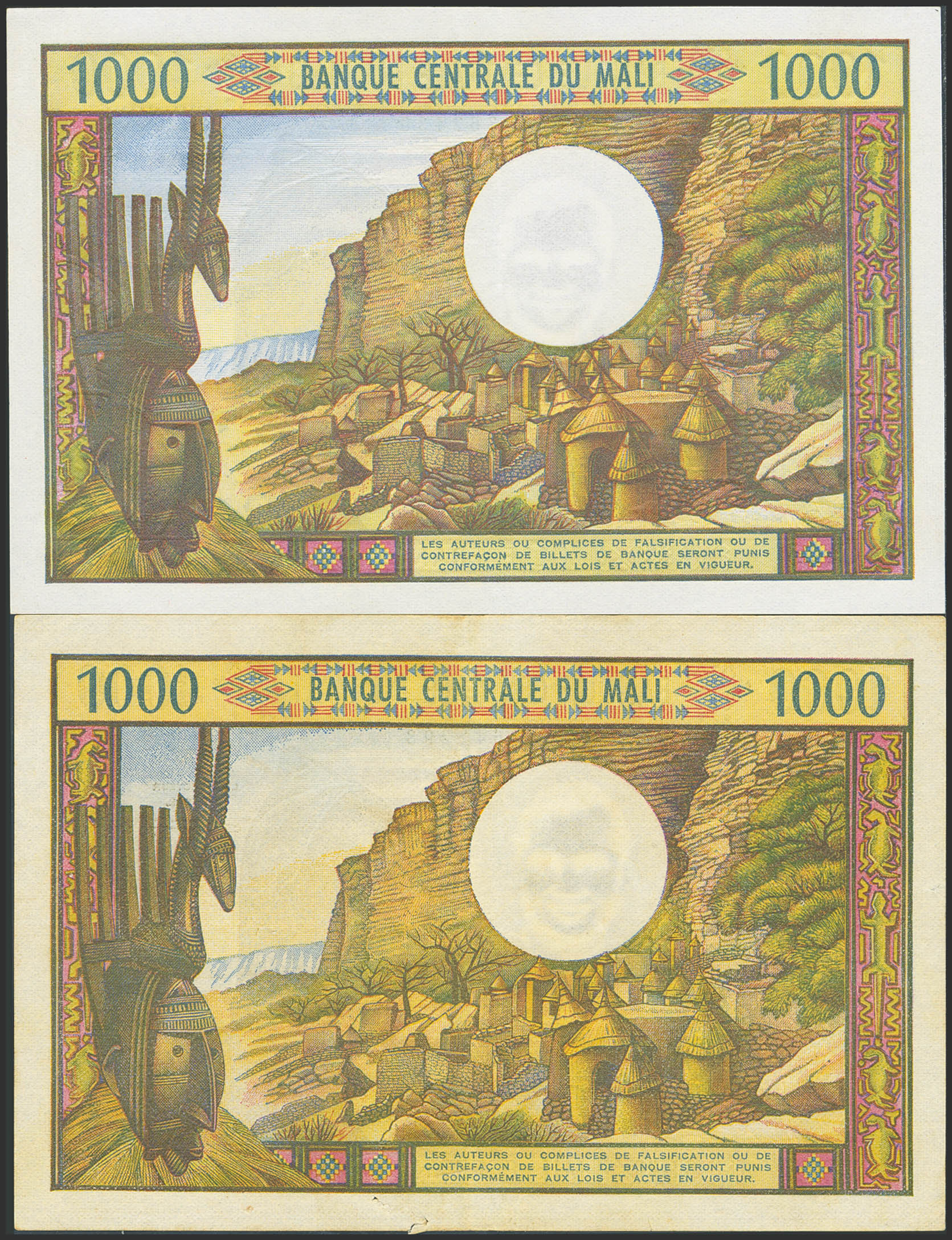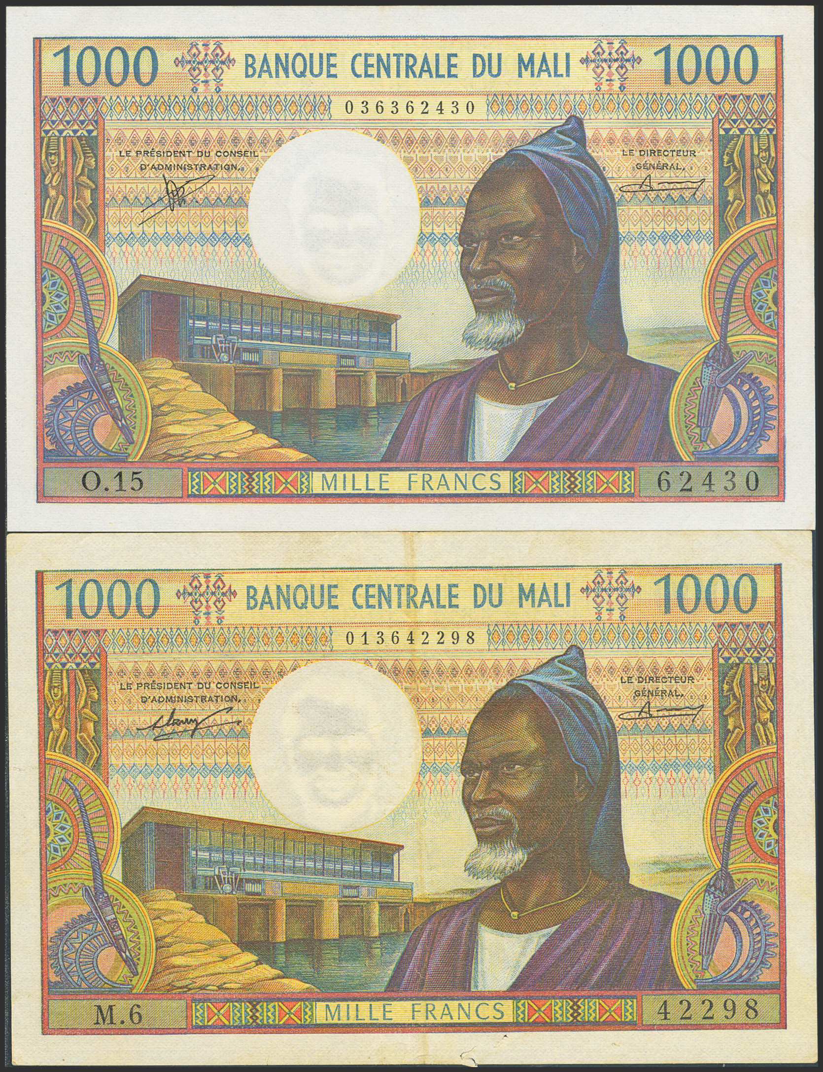 MALI. Lot of 2 notes of 1000 Francs. (1970ca). Banque Centrale. (Pick: 13a, 13b). Extremely Fine and More than Extremely Fine.