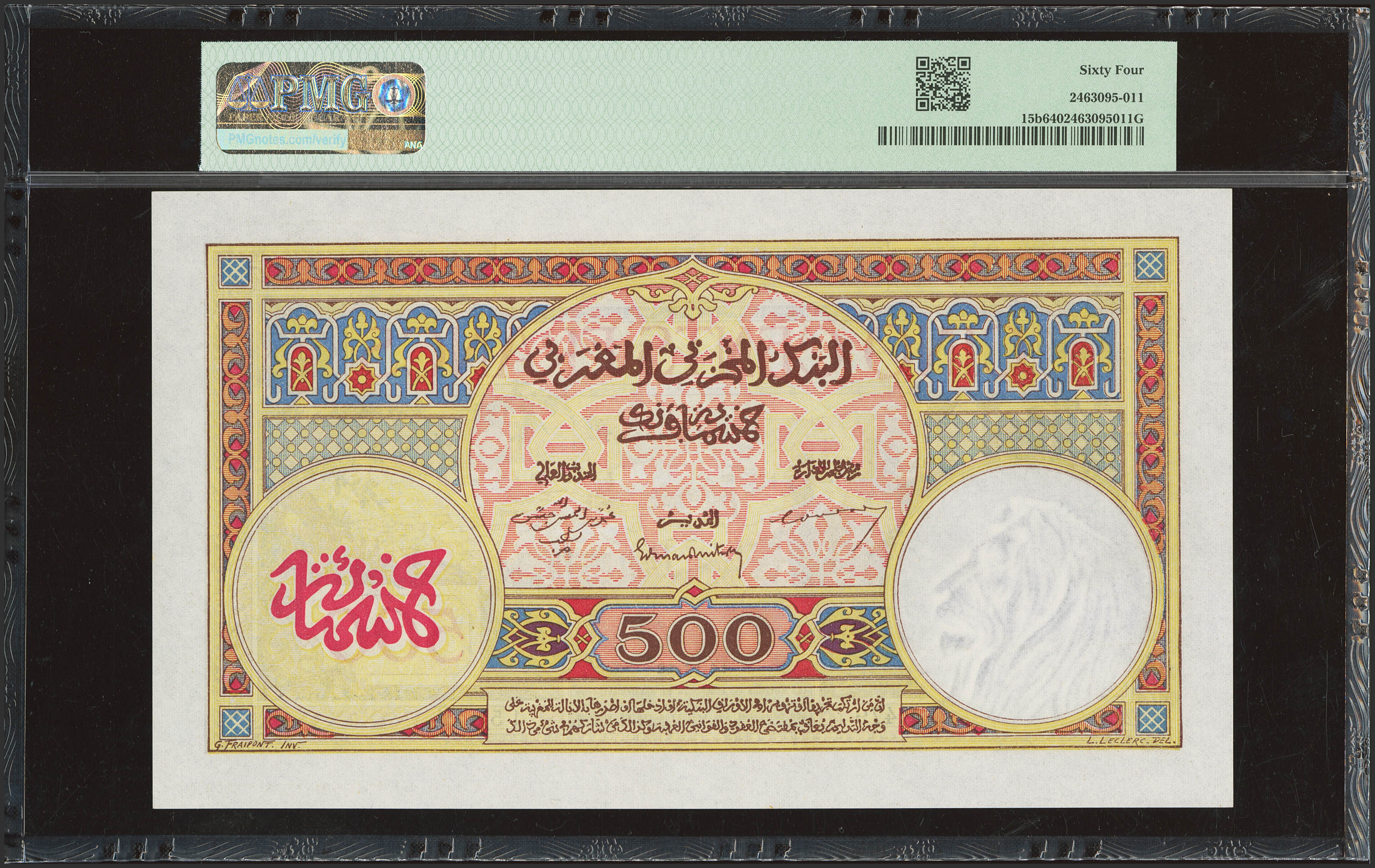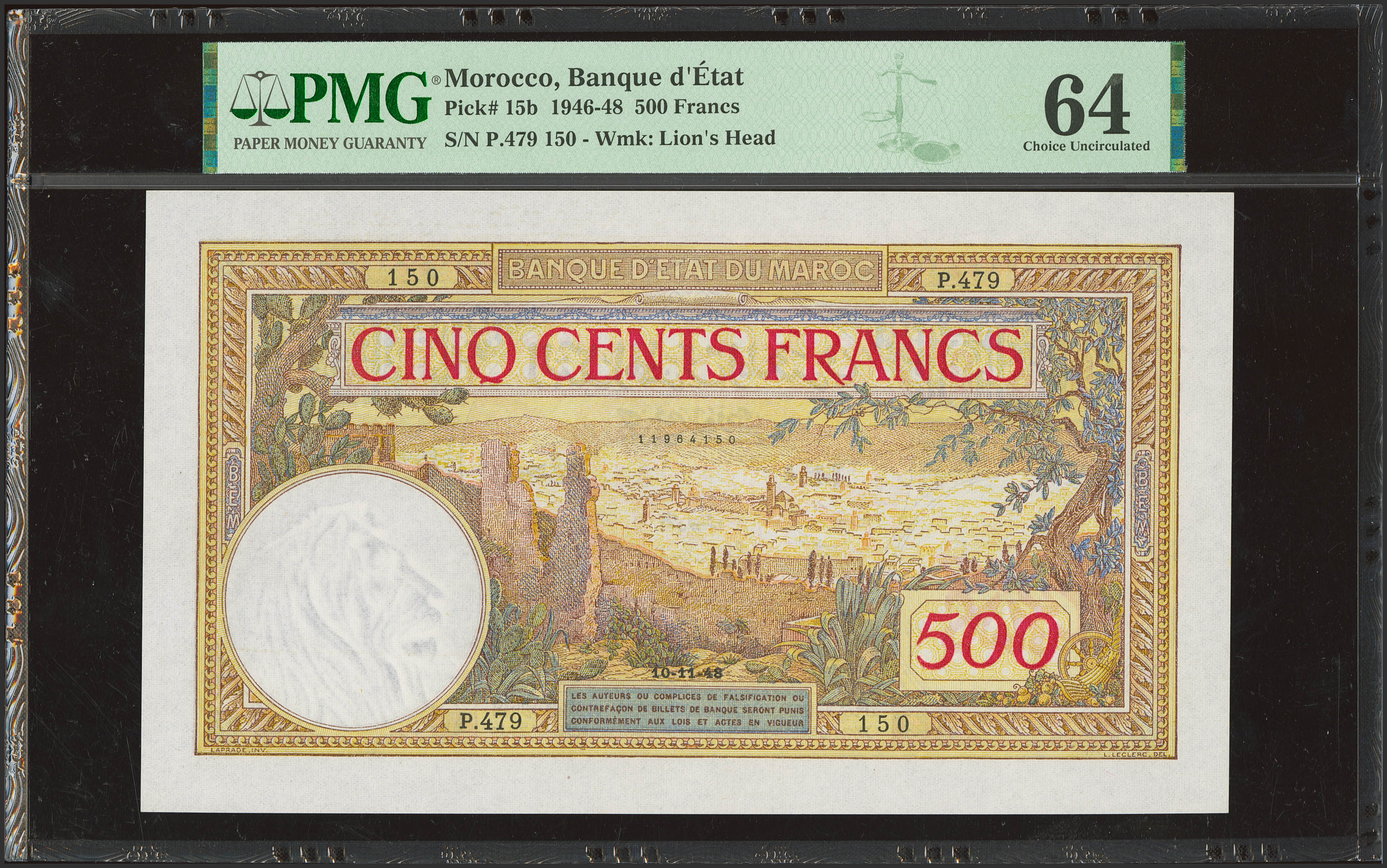 MOROCCO. 500 Francs. 10 November 1948. Banque d'Etat du Maroc. (Pick: 15b). PMG64.