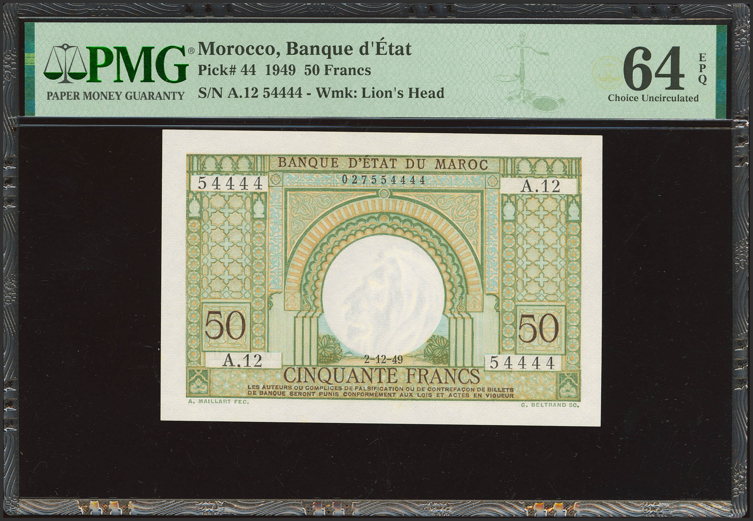 MOROCCO. 50 Francs. 2 December 1949. Banque d'Etat du Maroc. (Pick: 44). PMG64EPQ.