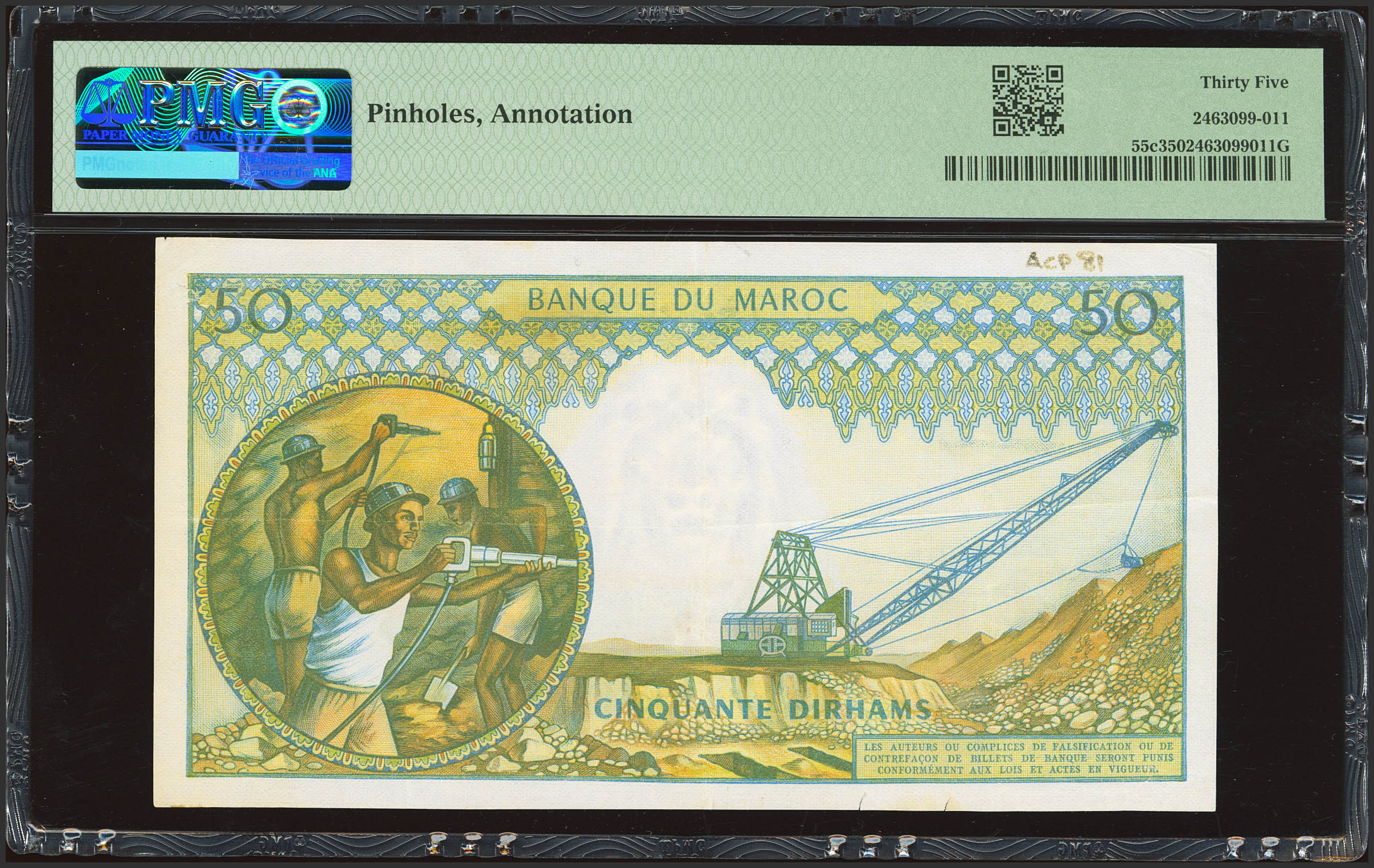 MOROCCO. 50 Dirhams. 1968. Banque du Maroc. (Pick: 55c). PMG35 (pinholes, annotation).