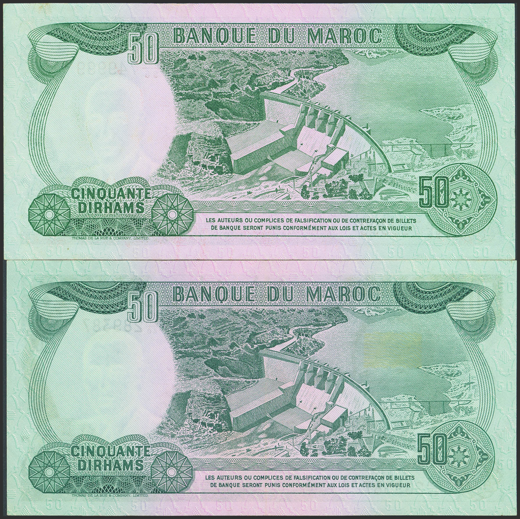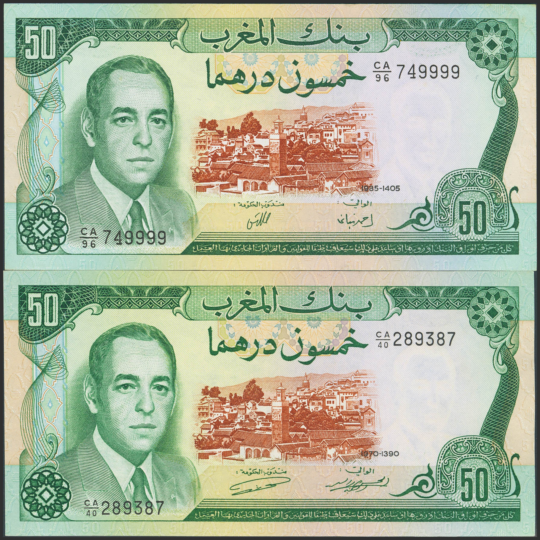 MOROCCO. 50 Dirhams. 1970 and 1985. Banque du Maroc. (Pick: 58a, 58b). Almost Uncirculated and Less than Uncirculated.