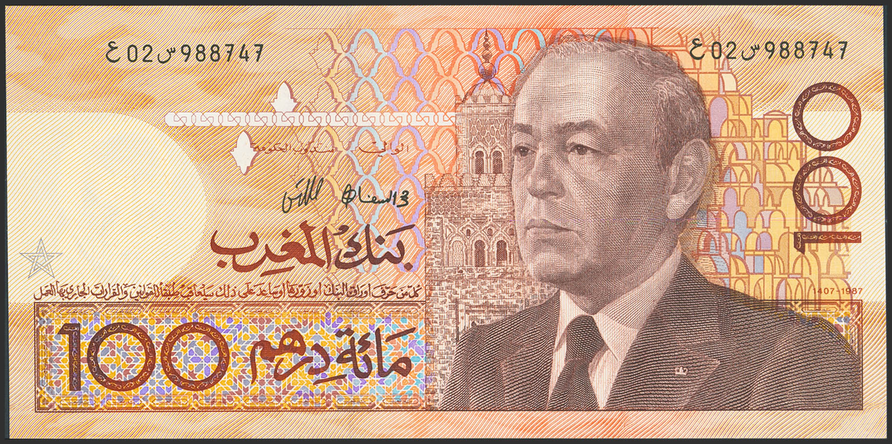 MOROCCO. 100 Dirhams. 1987. Bank Al-Maghrib. (Pick: 65a). Uncirculated.