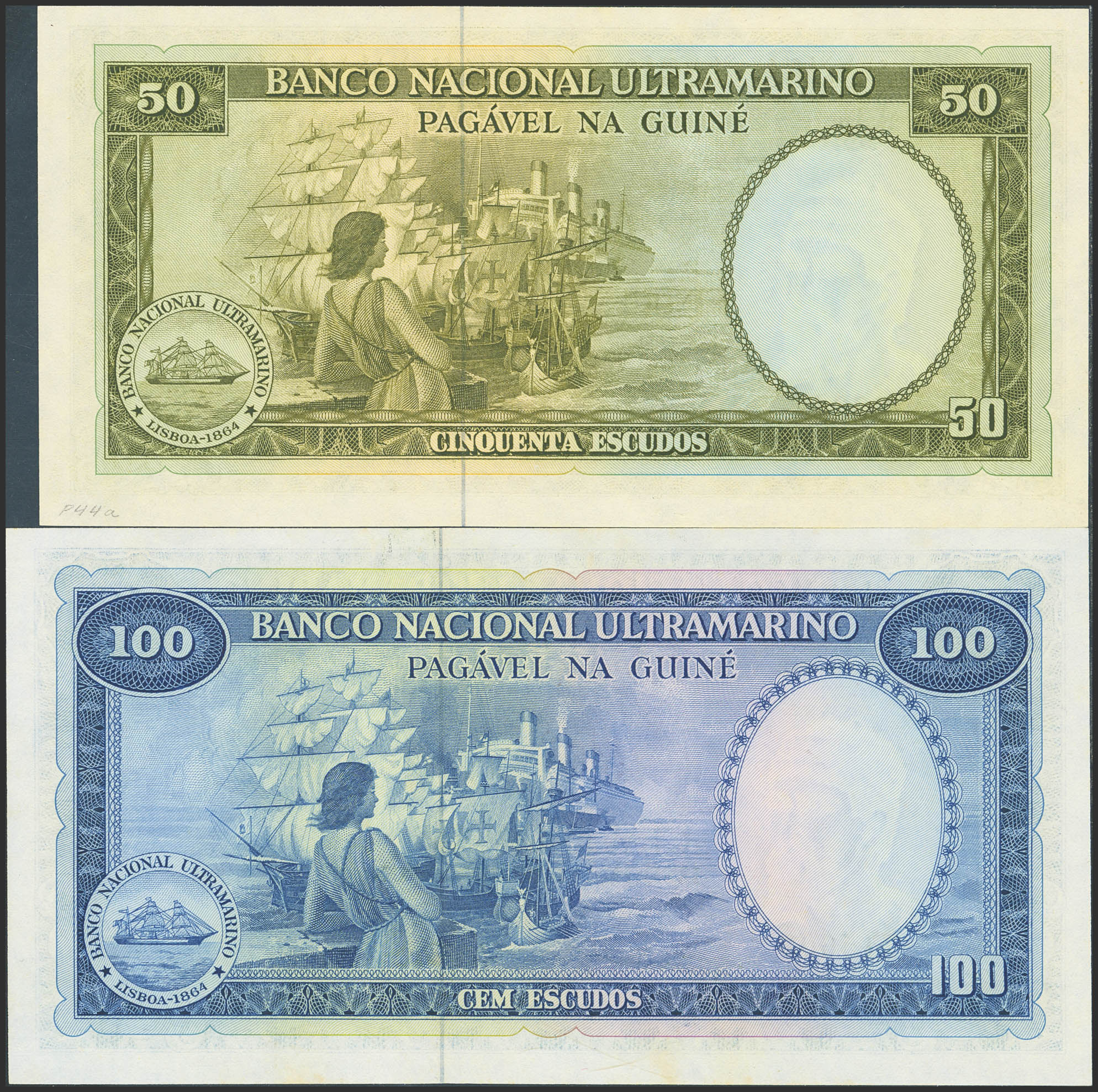 PORTUGUESE GUINEA. Lot of 2 notes of 50 and 100 Escudos. 17 December 1971. Banco Nacional Ultramarino. (Pick: 44a, 45a). Uncirculated.