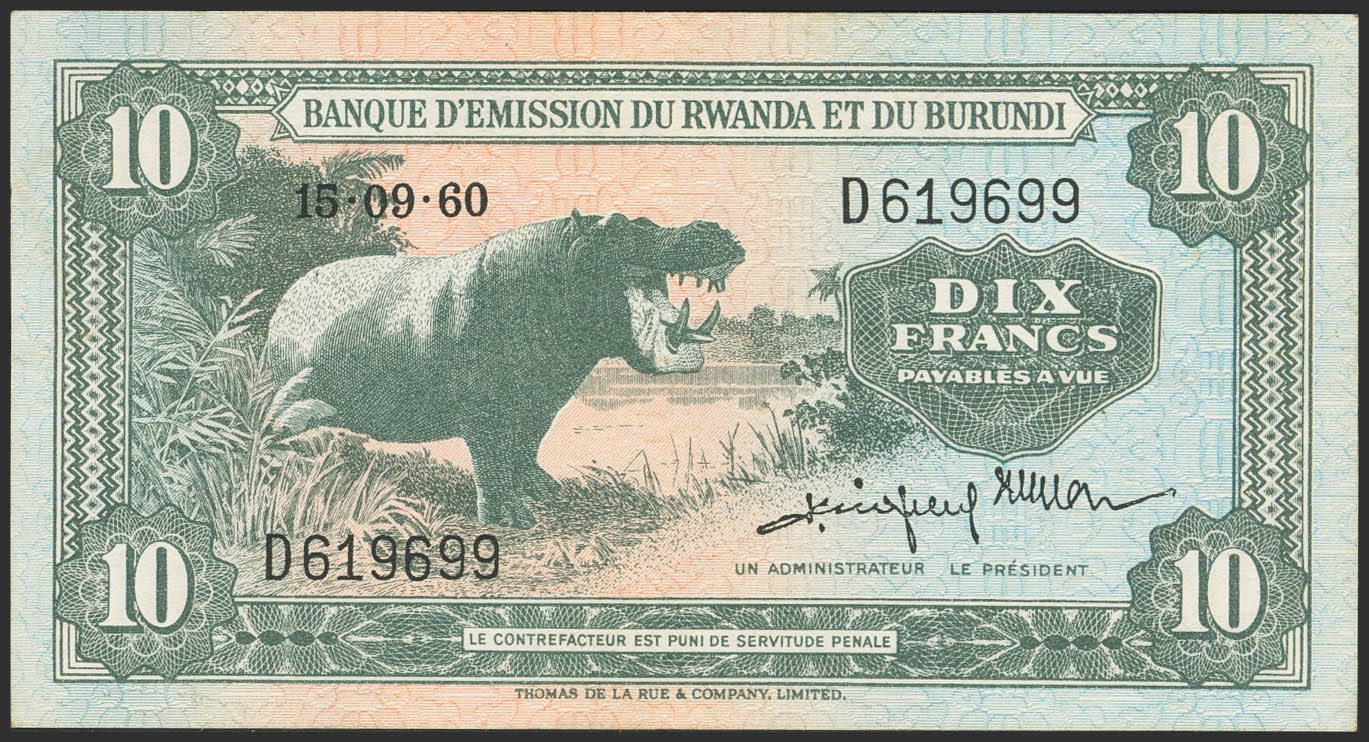 RWANDA-BURUNDI. 10 Francs. 15 September 1960. Banque d'Emission. (Pick: 2a). More than Extremely Fine.