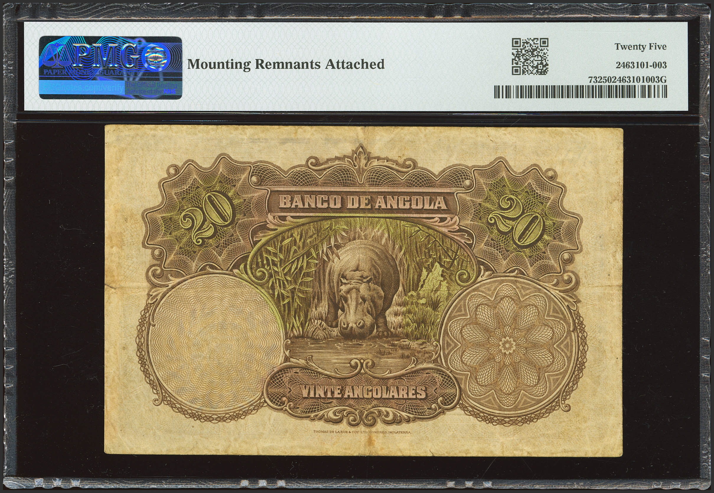 ANGOLA. 20 Angolares. 1 June 1927. Banco de Angola. (Pick: 73). PMG25 (mounted remants attached).