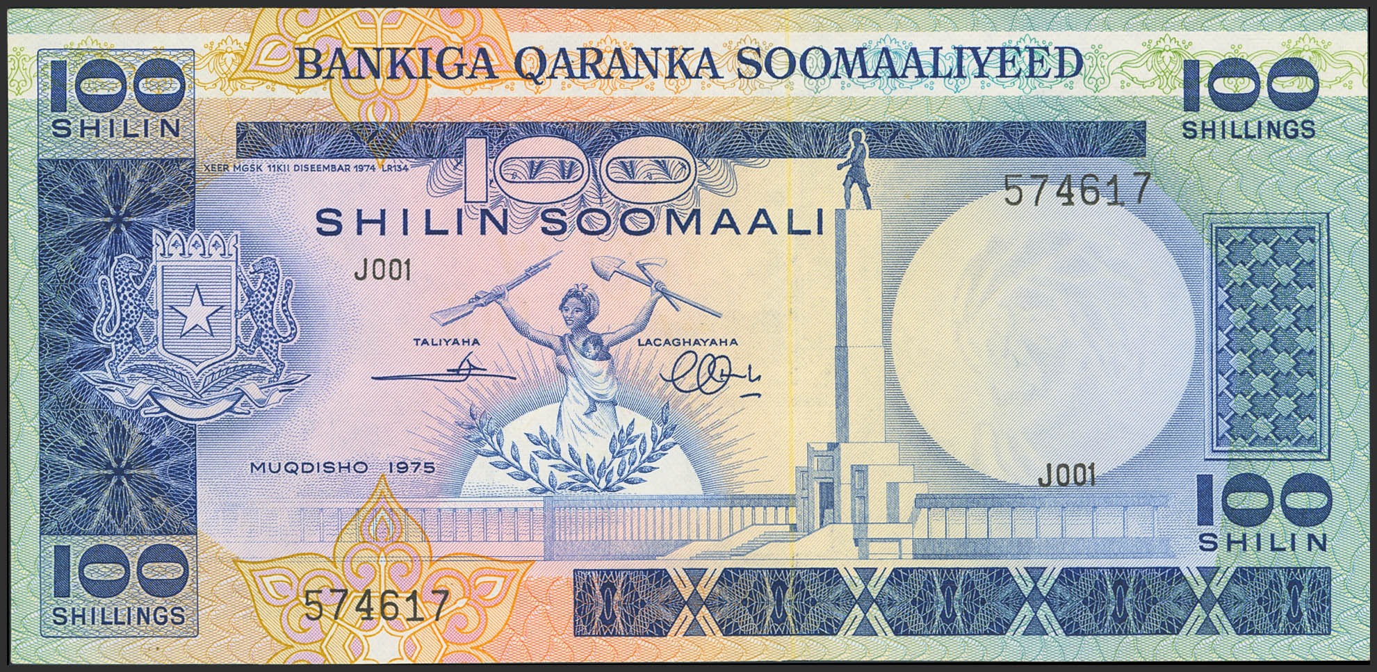 SOMALIA. 100 Shillings. 1975. Central Bank. (Pick: 20). Almost Uncirculated.